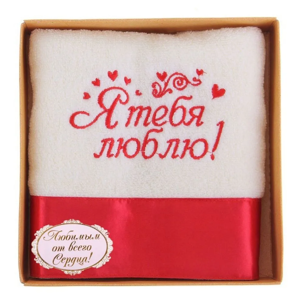 —Полотенце Сима Ленд с вышивкой Я тебя люблю, белое