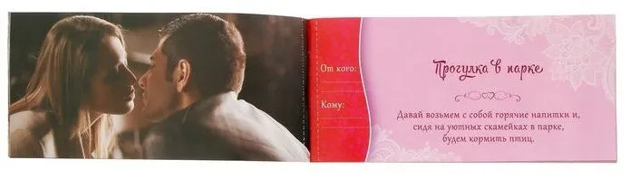 В наборе вы найдёте 20 купонов, которые помогут вам пробудить романтику в отношениях. Выбирайте отрывной купон с желанием и дарите его любимому человеку. Окунитесь в любовь с головой!