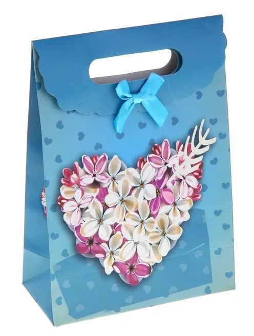 Любой подарок начинается с… упаковки. Что может быть трогательнее и волшебнее, чем ритуал разворачивания подаренного презента. И именно оригинальная, со вкусом выбранная упаковка выделит ваш подарок из массы других, продемонстрирует самые теплые чувства к виновнику торжества, создаст сказочную атмосферу праздника. Пакет с клапаном "Сердце из цветов" - это то, что вы искали.
