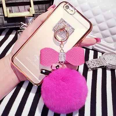 Чехол с бантом и помпоном на iPhone 6-6S, ярко-розовый