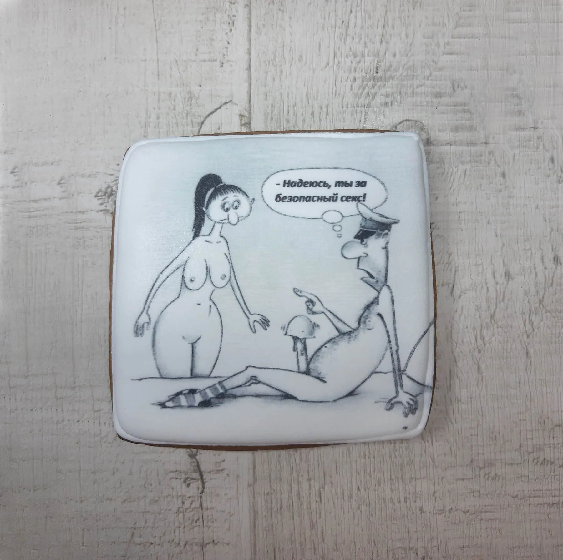 Оригинальное печенье от компании "Сладоленд" порадует любителей сладкого и станет прекрасным подарком на Новый Год или другой праздник. Печенье "Большая открытка" представлено в ассортименте и отличается забавными и пикантными сюжетами, изображенными на нем. Любой будет рад такому вкусному сувениру, ведь интересный и запоминающийся дизайн, неповторимый вкус и аромат печенья делают его настоящим произведением искусства.