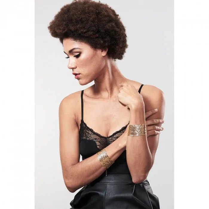 Элегантные браслеты из серии Desir Metallique от бренда Bijoux Indiscrets - это необычный аксессуар, который можно использовать и как украшение, и как наручники. Дизайн аксессуаров из серии Desir Metallique был навеян танцовщицами кабаре в Нью-Йорке двадцатых годов прошлого века, чья чувственность и соблазнительность присутствовали в каждой детали их образа. При выходе в свет браслеты подчеркнут Вашу элегантность и уникальный стиль, а в приватной обстановке с Вашим возлюбленным они превратятся в мощное оружие соблазнения. Соедините браслеты при помощи небольшой цепочки, чтобы превратить их в наручники.