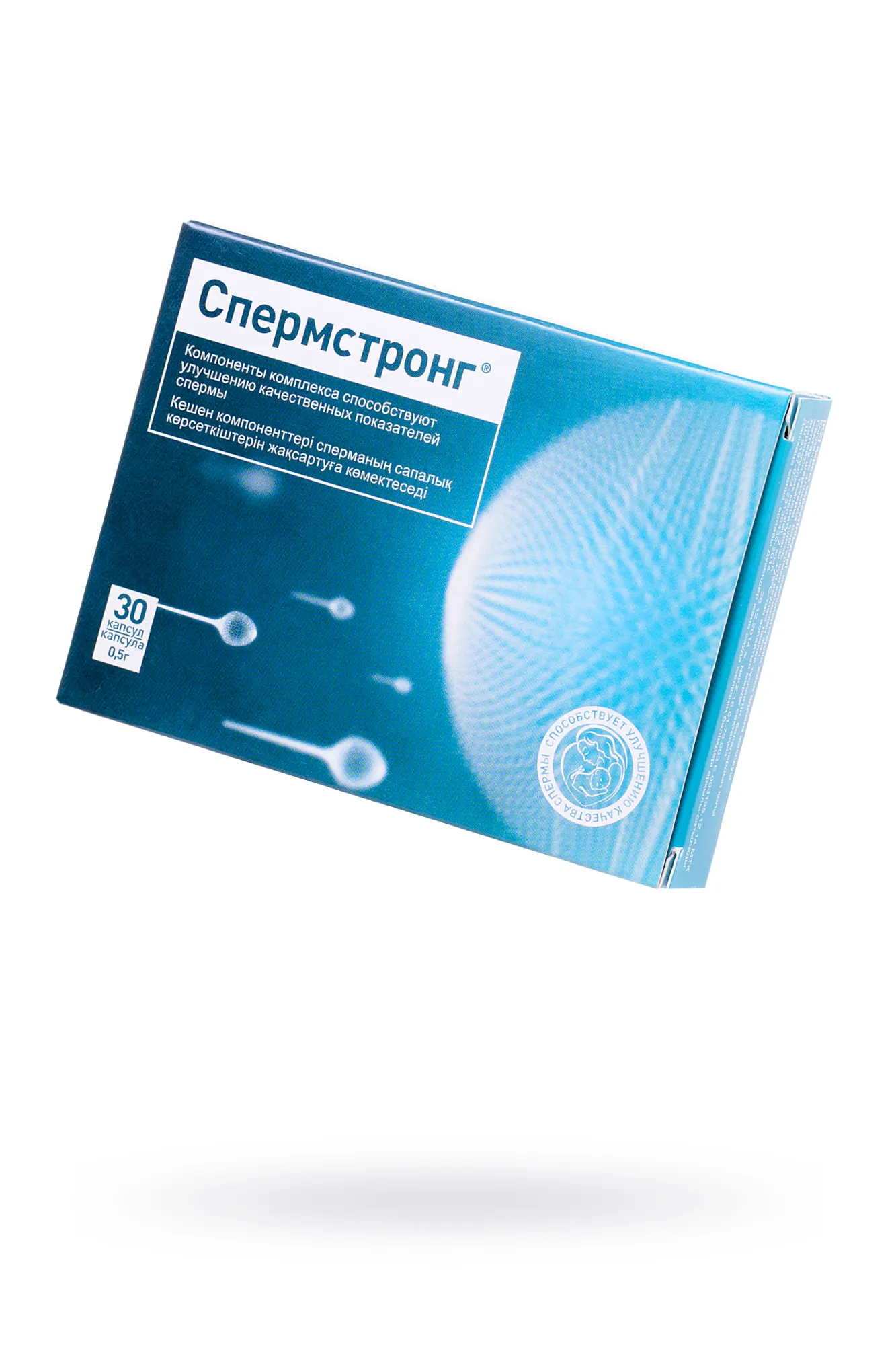 Активные компоненты препарата “Спермстронг™” способствуют восстановлению нормальной подвижности сперматозоидов, их созреванию. Препарат эффективен в комплексной терапии идиопатического мужского бесплодия (при нарушении репродуктивной функции у мужчин, обусловленном снижением качества спермы – недостаточной концентрацией сперматозоидов, уменьшением подвижности сперматозоидов и их абсолютного количества). Спермстронг способствует улучшению качественных показателей спермы: повышаются концентрация, подвижность, количество и оплодотворяющая способность сперматозоидов стимулированию сперматогенеза и кровообращения в половых органах улучшению общего самочувствия, повышению либидо уменьшению утомляемости, и раздражительности повышению умственной и физической работоспособности, памяти уменьшению потоотделения нормализации обмена веществ и укреплению иммунитета Рекомендуется мужчинам, нуждающихся в улучшении качественных показателей спермы. Рекомендуется в качестве источника L-карнитина, витаминов С, У, В5, В6, селена, марганца, цинка. Рекомендации по применению: Взрослым мужчинам по 1 капсуле 2 раза в день. Продолжительность приема – 3-6 месяцев. Состав: Arginine (L-аргинин); Acetyl-L-Carnitine (ацетил-L-карнитин); Vitamin С (витамин С); Еxtractum Аstragalus membranaceus (экстракт астрагала); Vitamin Е (витамин Е); Vitamin В5 (витамин В5); Manganum gluconate (марганца глюконат); Zinc sulfate (цинка сульфат); Vitamin В6 (витамин В6); «Селексен». Вспомогательные компоненты: магния стеарат, магния оксид. Противопоказания: Индивидуальная непереносимость компонентов. Перед применением рекомендуется проконсультироваться с врачом. Форма выпуска: 30 капсул по 0,5 г БАД, НЕ ЯВЛЯЕТСЯ ЛЕКАРСТВОМ.