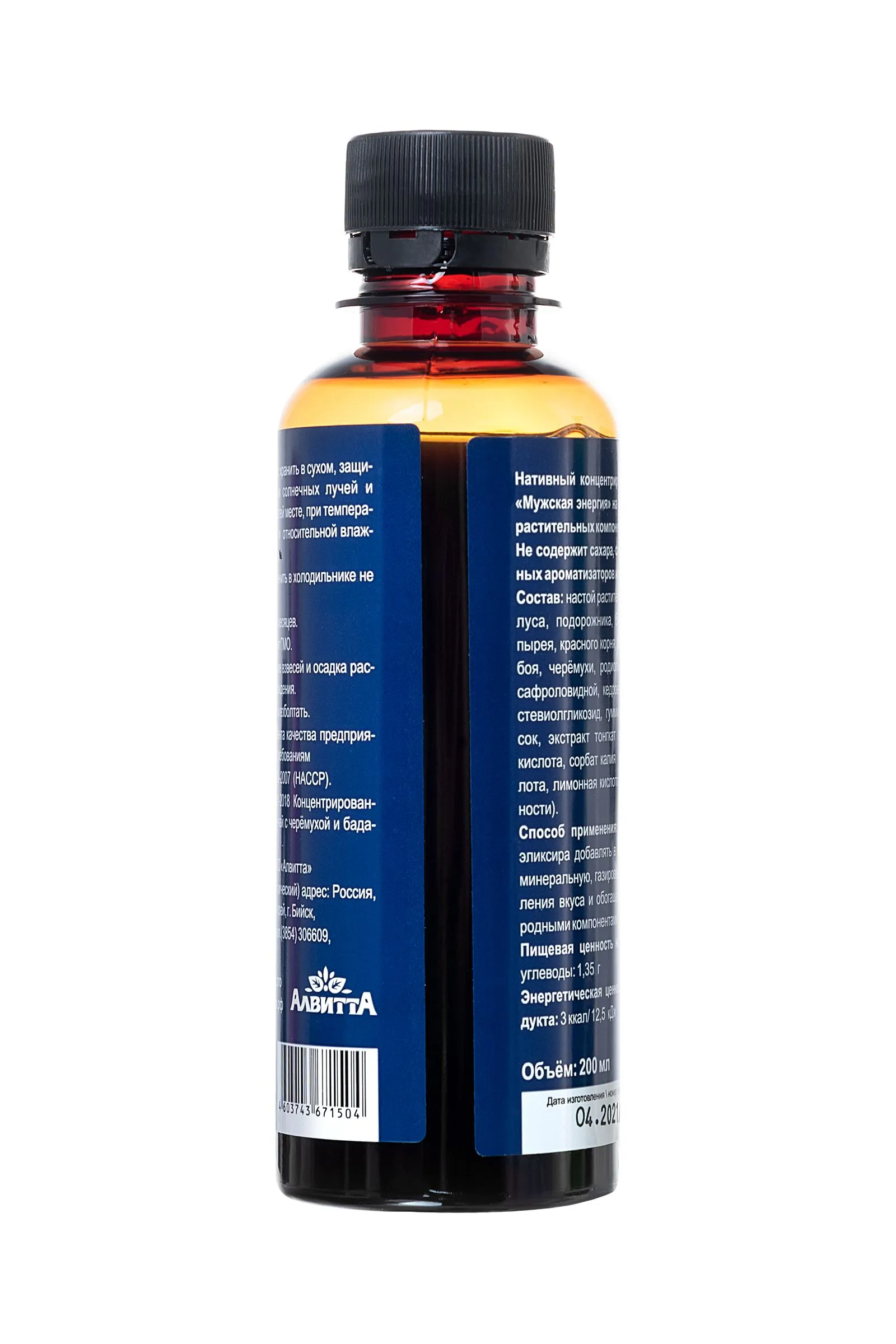 Концентрированный эликсир «Мужская энергия» на соке черники из 15 растительных компонентов-это уникальное оздоровительное природное средство. Активные вещества, содержащиеся в эликсире, способствуют: улучшению кровоснабжения органов малого таза, препятствуют образованию мочевых камней, сохранению половой потенции в пожилом возрасте, повышению работоспособности и сопротивляемости организма, Противопоказания: индивидуальная непереносимость компонентов, гипертоническая болезнь, гиперацидный гастрит. Объём: 200мл