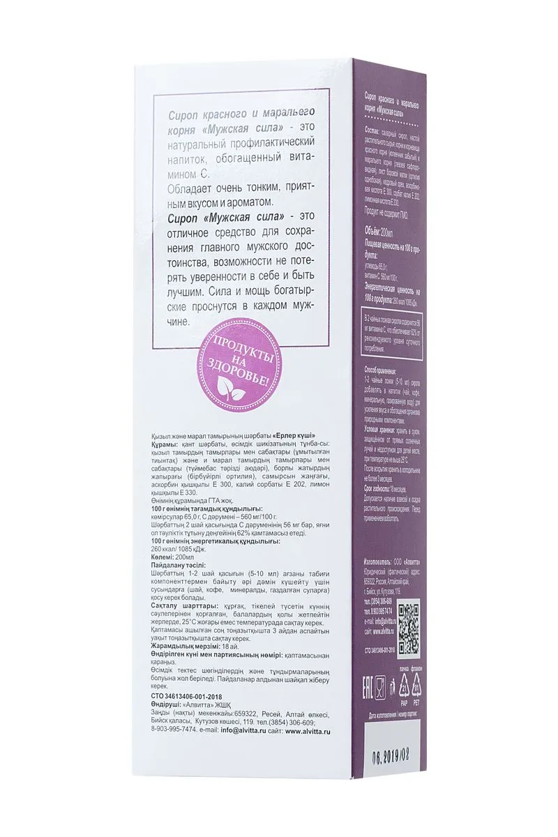 Сироп красного и маральего корня «Мужская сила» - это натуральный профилактический напиток, обогащенный витамином С. Обладает очень тонким, приятным вкусом и ароматом. Сироп «Мужская сила» - это отличное средство для сохранения главного мужского достоинства, возможности не потерять уверенности в себе и быть лучшим. Сила и мощь богатырские проснутся в каждом мужчине.Корни и корневища красного корня (копеечника забытого) применяются для профилактики и борьбы с простатитом, уретритом, импотенцией и др. Значительно увеличивают половое желание и сексуальные возможности мужчины. Корни и корневища маральего корня (левзея сафлоровидная) это источник энергии, выносливости и умственной активности. Лист боровой матки (ортилия однобокая) благодаря своему уникальному составу обладает дезинфицирующими, мочегонными, противовоспалительными свойствами, борясь с простатитом, мужским бесплодием, половым бессилием, аденомой простаты, г