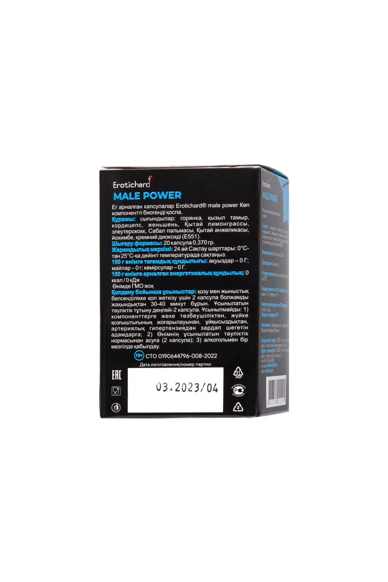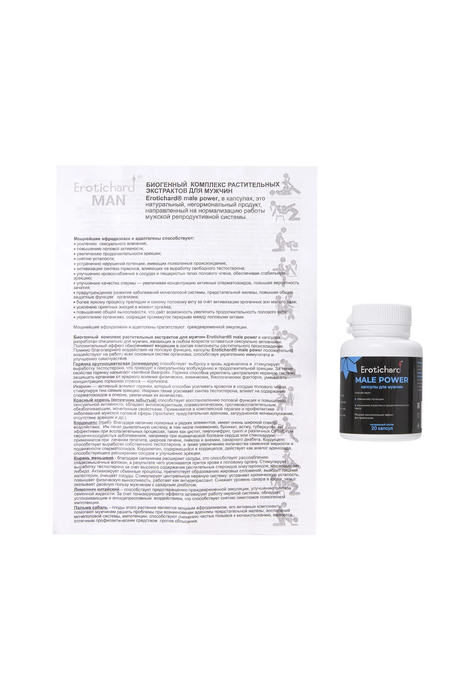 Возбуждающие капсулы быстрого действия Erotichard® male power помогают мужчинам в любом возрасте оставаться в полной боевой готовности независимо от внешних факторов. Природный стимулятор и адаптоген способствует повышению жизненных сил и оздоровлению всего организма, одновременно препятствуя преждевременной эякуляции. Erotichard® male power – это природный источник минералов, микроэлементов, антиоксидантов, особенно витамина Е и цинка, аминокислот, гликозидов, фитонутриентов для поддержания сексуальной функции и гормонального баланса.