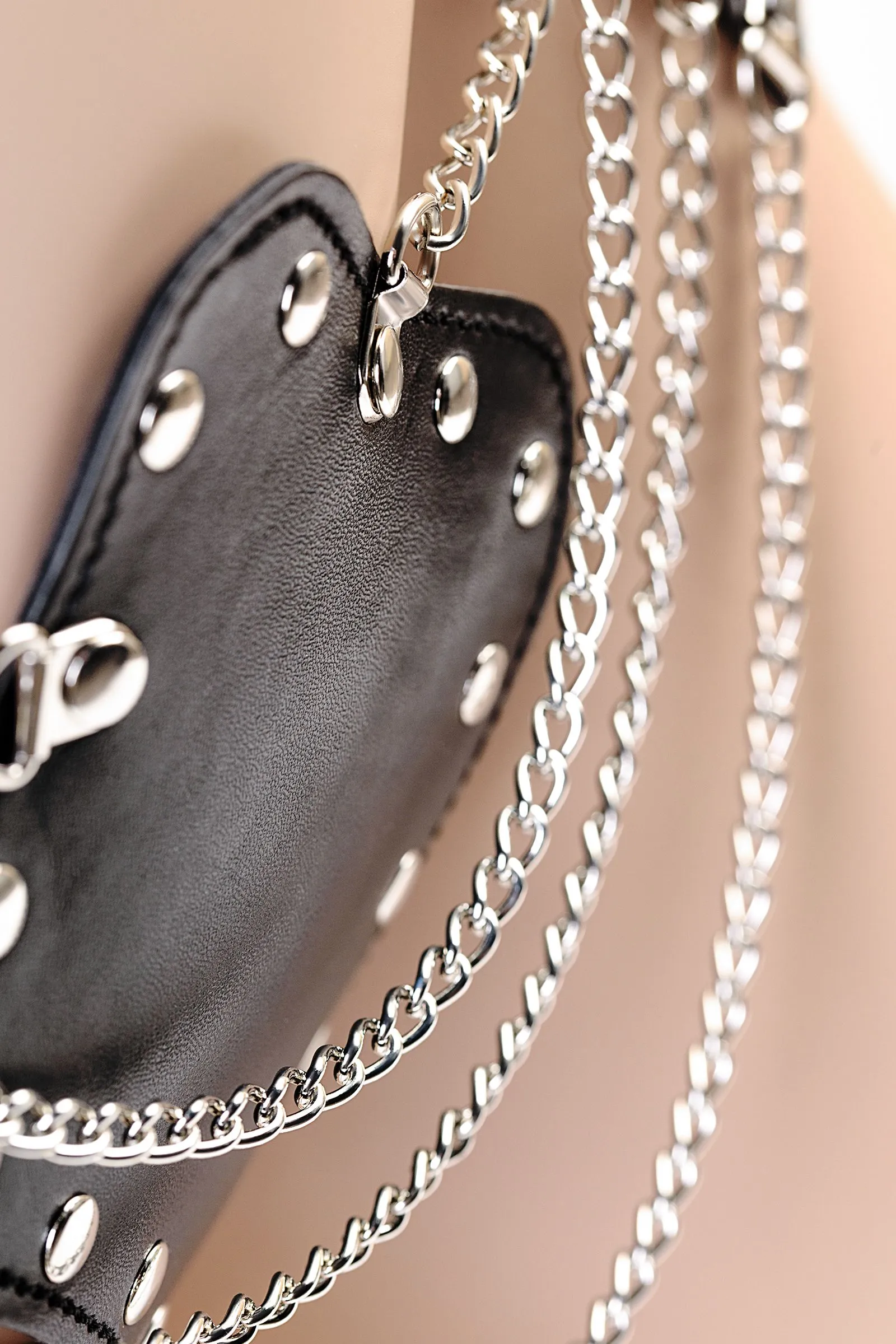 Ошеломительное бикини для дерзких и красивых! Трусики-стринги фантазийной формы украшены сверкающими цепочками, эффектное бра открывает бюст. Металл холодит кожу, возбуждая желание сделать ночь горячее. Самые смелые и независимые могут надеть бра поверх одежды и покорить весь мир! Регулируемые застежки позволяют подогнать этот комплект под любой размер.