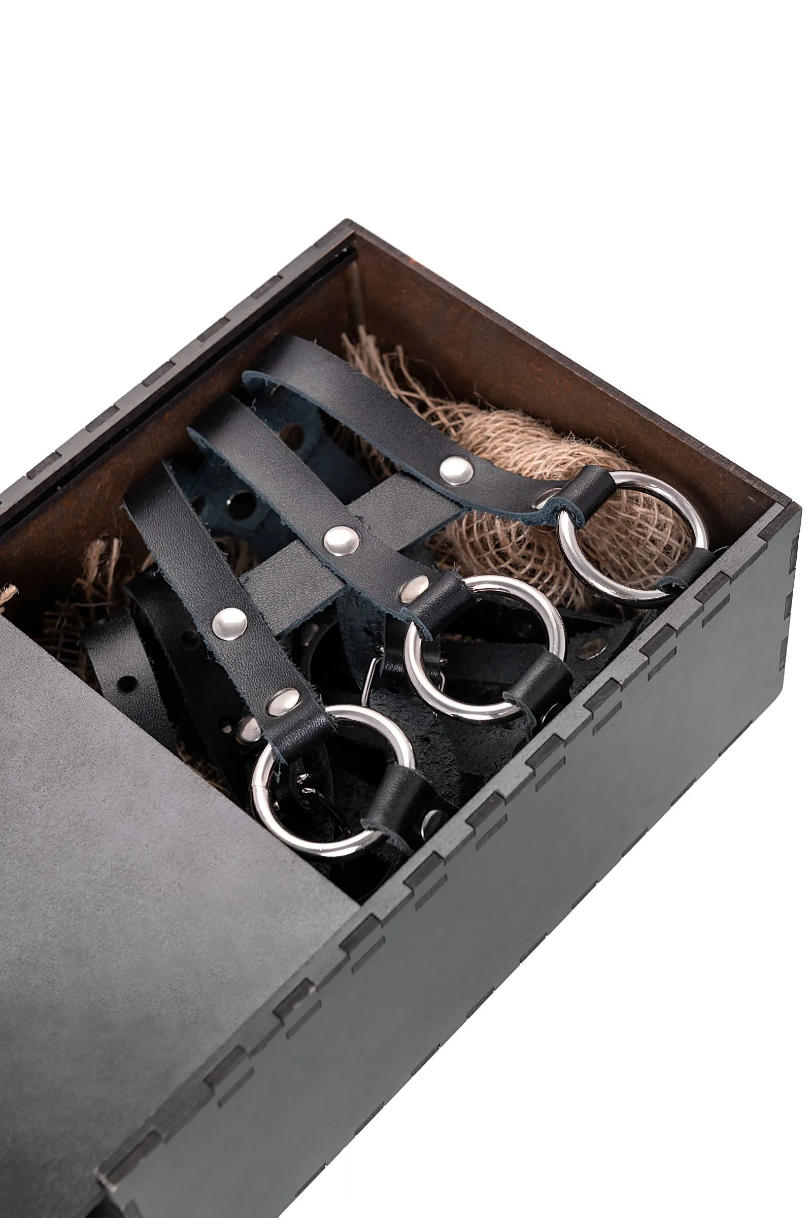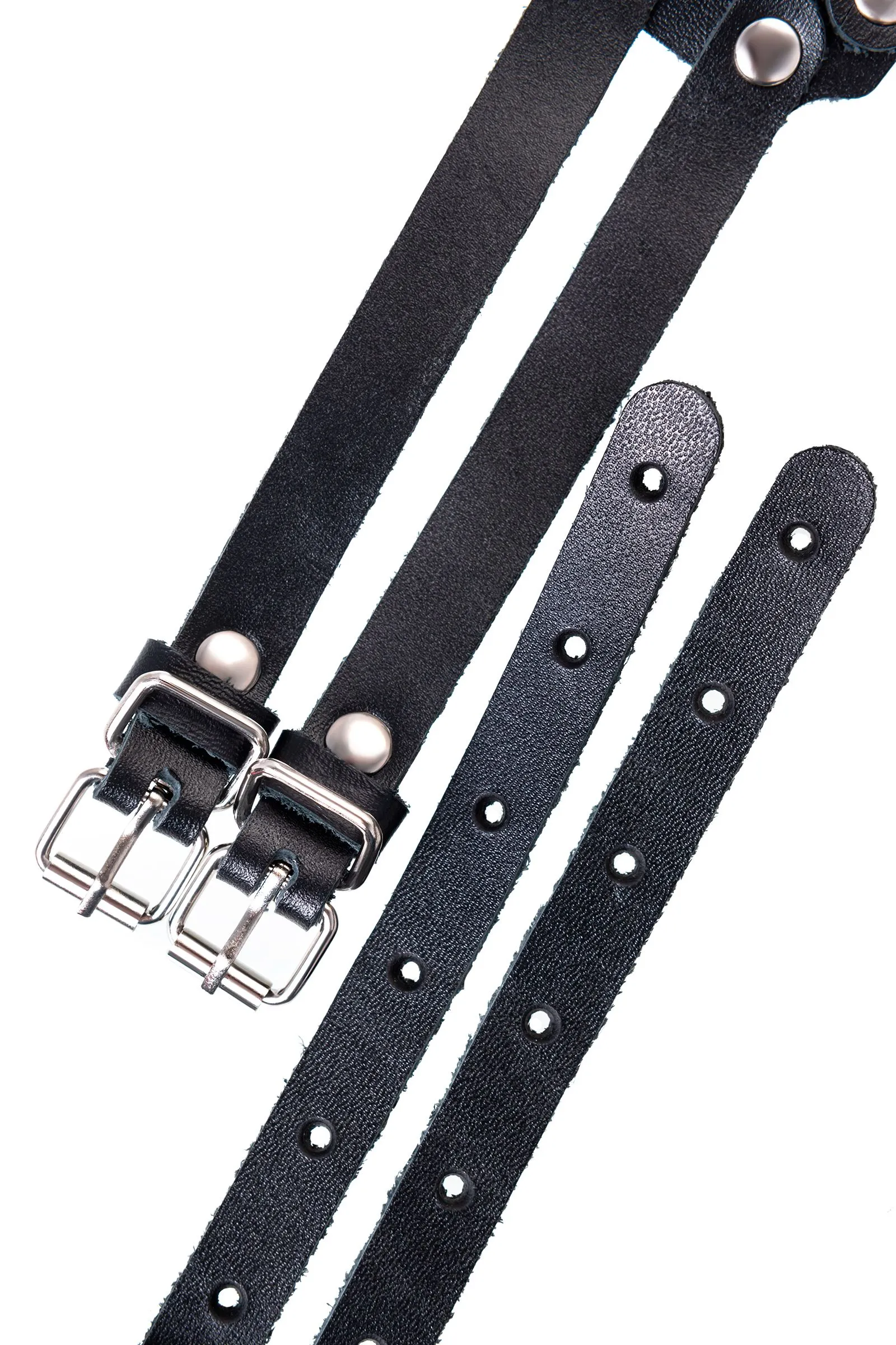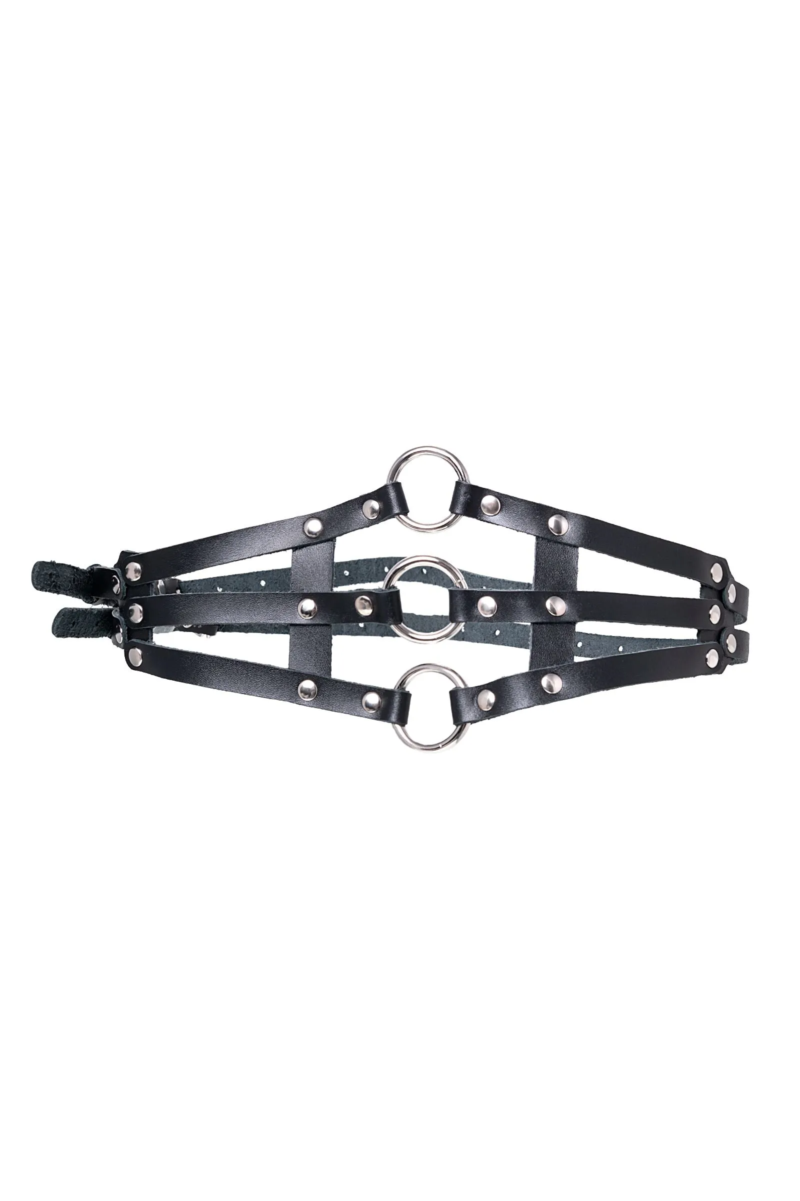 Сексуальный пояс от Pecado создаст будоражащий образ для БДСМ-сессии. Чёрные тонкие ремешки переплетены и соединяются в изящный аксессуар. Ремешки выполнены из мягкой, натуральной черной кожи вручную. Материал тактильно приятный и износостойкий. Металлические заклёпки по всей поверхности обеспечивают надёжность девайса. 3 стальных кольца по центру добавляют дерзости атрибуту. Идеальная посадка на тело регулируется с помощью металлической застежки. Портупея используется для сексуальных, ролевых БДСМ-игр. А также в качестве стильного аксессуара для тематических вечеринок и фотосессий. ● 100% натуральная кожа. ● Ручная работа. ● Износостойкий, тактильно приятный материал ● Надежная высококачественная фурнитура. ● Универсальный размер.
