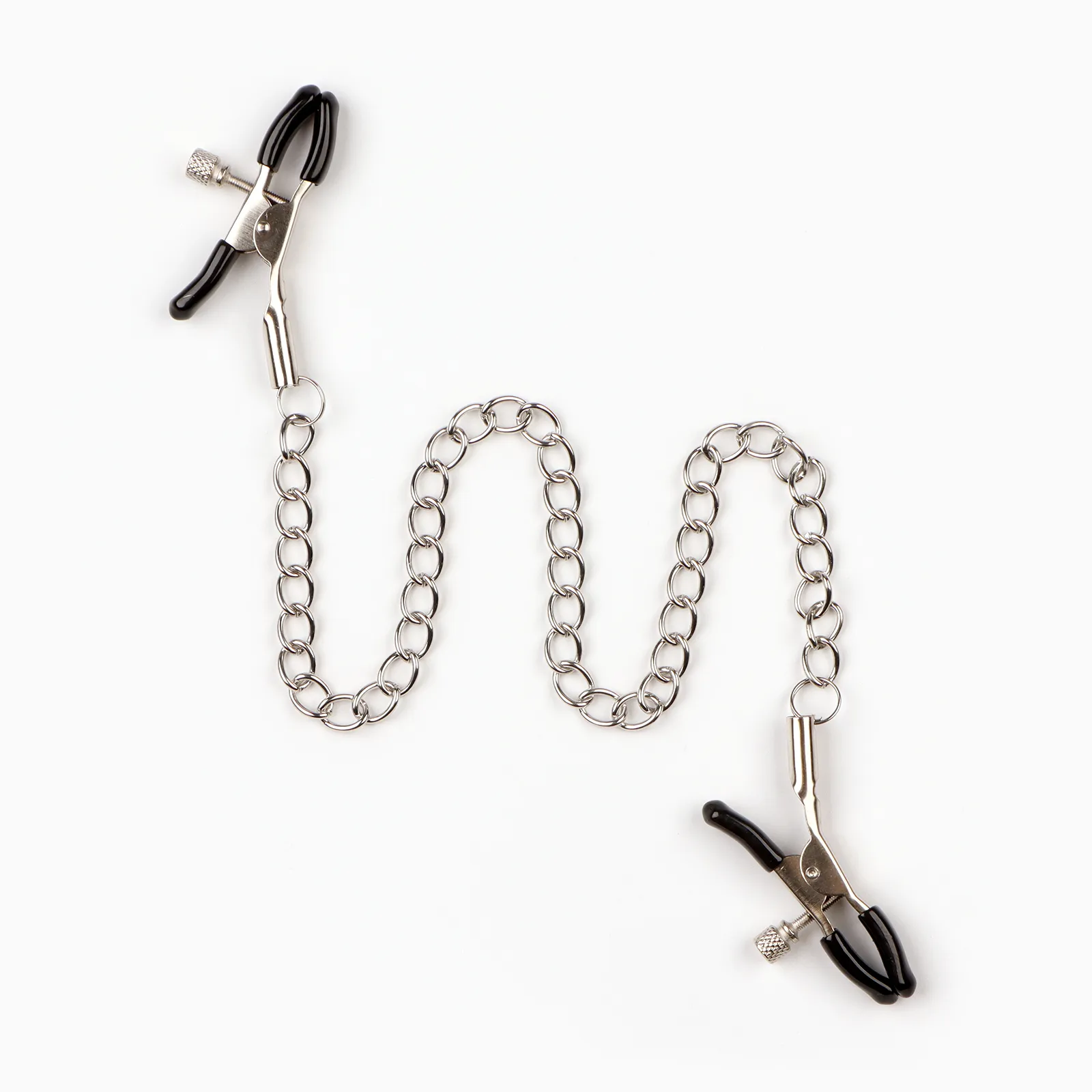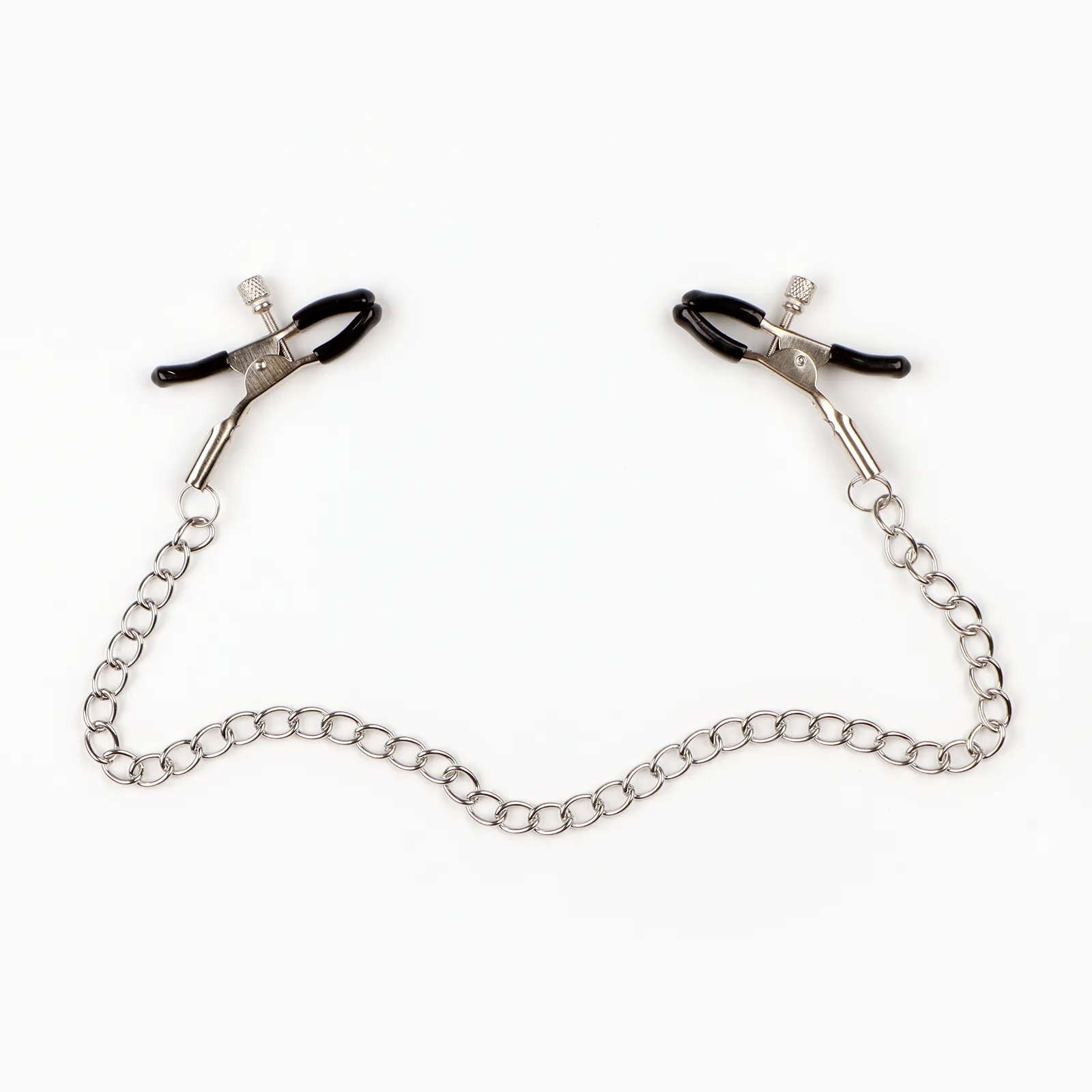 Зажимы для сосков и клитора изготовлены из алюминия, изделие имеет пластиковые наконечники. Длинная цепь позволяет одновременно использовать зажимы для сосков и клитора. Соединяющая цепочка является не только красивым дополнением, но и позволяет оттягивать и вращать соски для получения дополнительных приятных ощущений. Можно использовать как самостоятельный стимулятор, а также как дополнение к прелюдии и сексу.