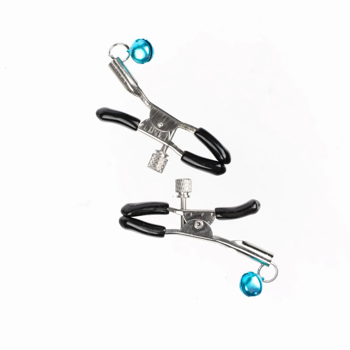Зажимы для сосков - это аксессуар, который идеально подойдет тем, кто хочет разнообразить свои сексуальные игры, добавив в них элемент БДСМ. Данная модель украшена бирюзовыми звенящими бубенчикам, которые сделают интимную близость особенно игривой.