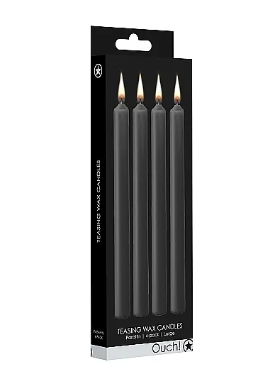 Teasing Wax Candles Large – набор из 4-х восковых свечей черного цвета. Усильте ощущения, увеличьте адреналин, и насладитесь беспрецедентным возбуждением, когда капающий горячий воск будет касаться кожи, не вызывая ожогов. Восковые BDSM-свечи в сочетании с повязкой на глазах или другим приспособлением для бондажа гарантируют увлекательное приключение всем участникам.
