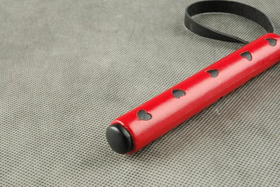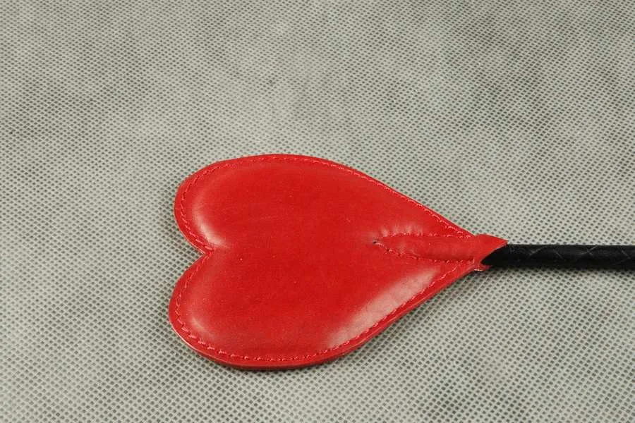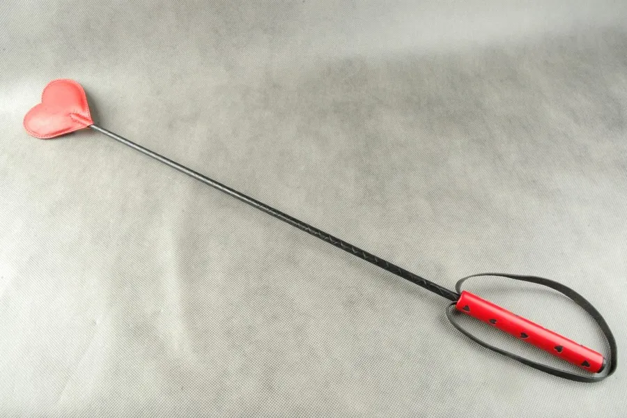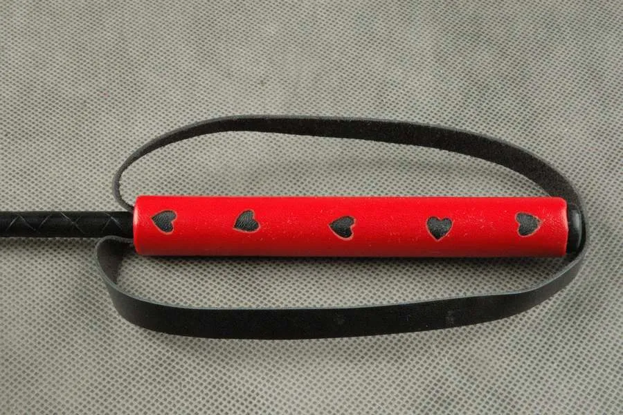 Стек с фигурным шлепком в виде “Черви” с мягкой проставкой. Ручка обтянута красной кожей, с вырубленными "черви", с петлей для фиксации руки.