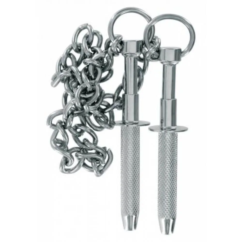 Зажимы на соски стали неотъемлемым атрибутом в BDSM практике. Данные зажимы утяжеляют грудь и соединяют соски металлической цепочкой, стимулируя их во время мастурбации или полового акта. Зажимы сделаны из безопасной для тела высококачественной хирургической стали. Их можно кипятить и протирать спиртосодержащими растворами для дезинфекции.
