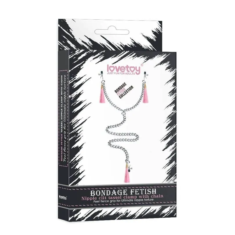 Зажимы для сосков и клитора с розовыми кисточками понравятся тем, кто хочет внести в свои любовные игры новых невероятных ощущений. Они станут отличным подарком для Вашей партнерши! После использования зажимов соски и клитор станут невероятно чувствительными, и каждое Ваше прикосновение к ним будет более ощутимым. Зажимы соединяются между собой при помощи металлических цепочек. Степень их сжатия можно регулировать при помощи винтов. У зажимов есть силиконовая насадка, которая защитит нежную кожу от повреждений, но при этом обеспечит надежную фиксацию.