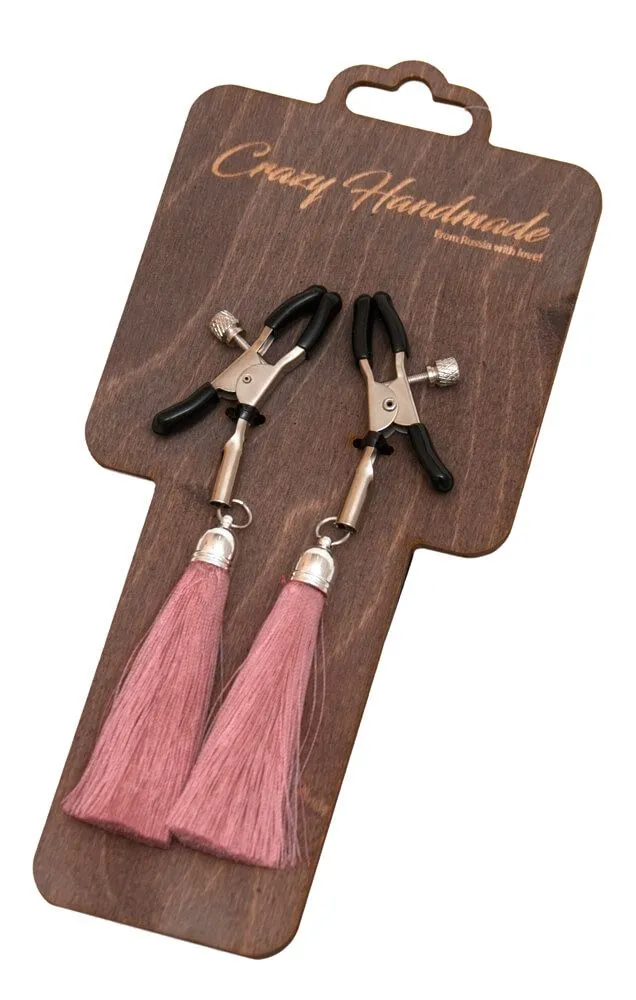 —Зажимы на соски PinkRabbit с кисточками из шелка, розовые