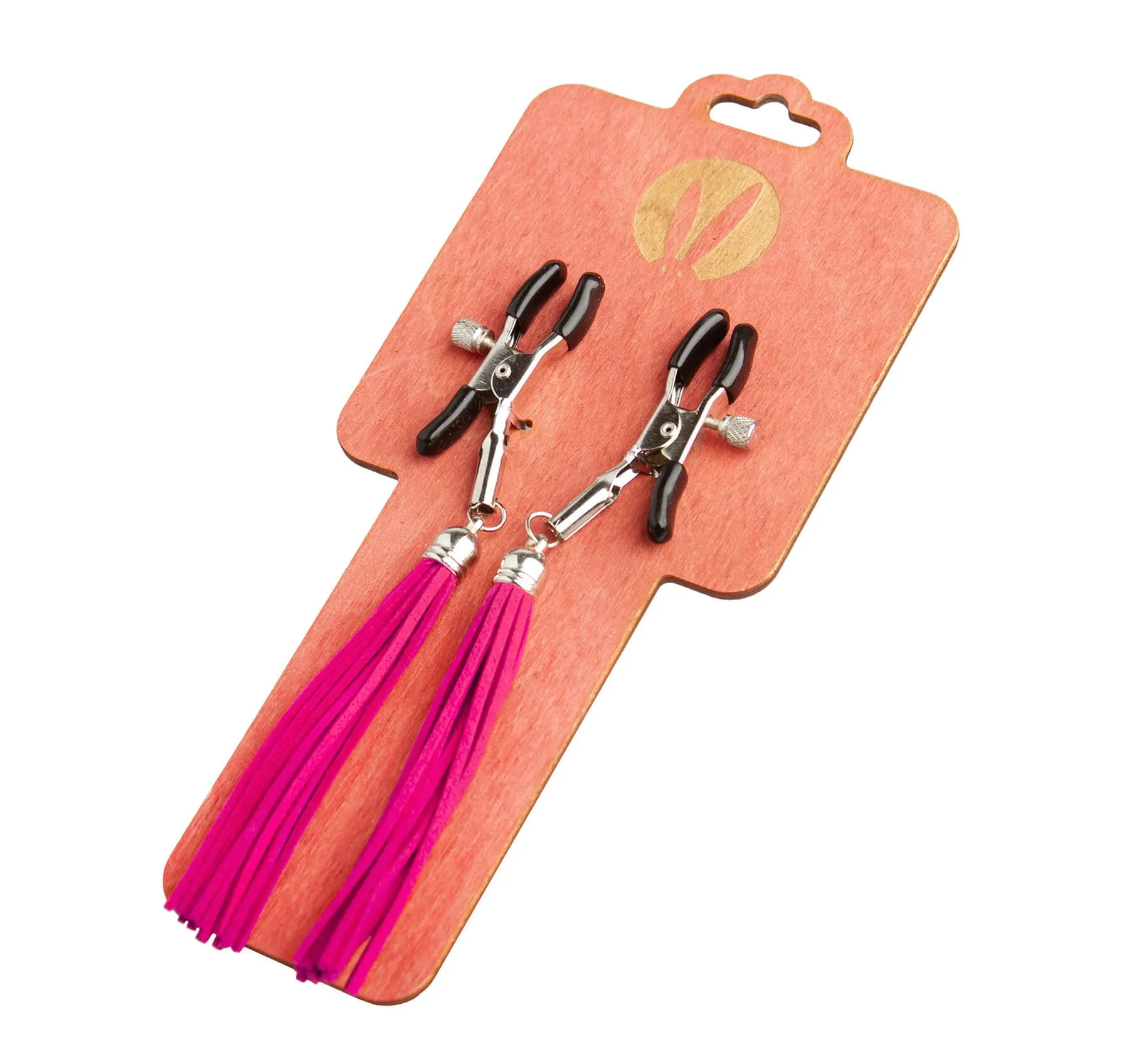 Зажимы-прищепки на соски от бренда Pink Rabbit созданы для стимуляции сосков и придания им чувствительности. Зажимы украшены красивыми кисточками цвета фуксия, выполненными из искусственной замши. Кончики зажимов покрыты мягким силиконом, поэтому они не травмируют нежную кожу. А степень сжатия Вы сможете регулировать самостоятельно при помощи винтов. После использования таких зажимов соски станут особенно чувствительными и каждое прикосновение к ним будет гораздо более ощутимым.