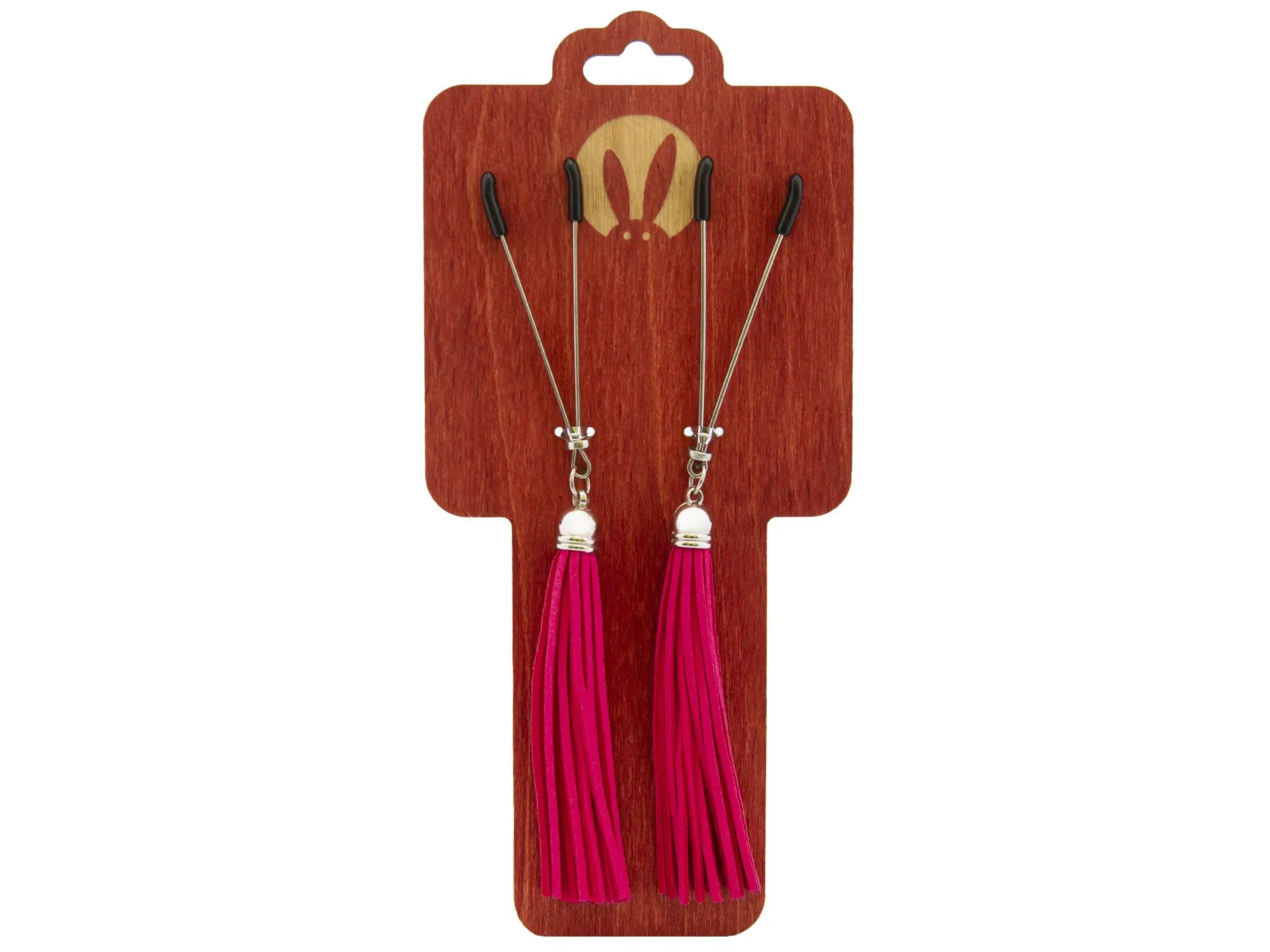 Зажимы-вилки на соски PinkRabbit с кисточками из замши, фуксия
