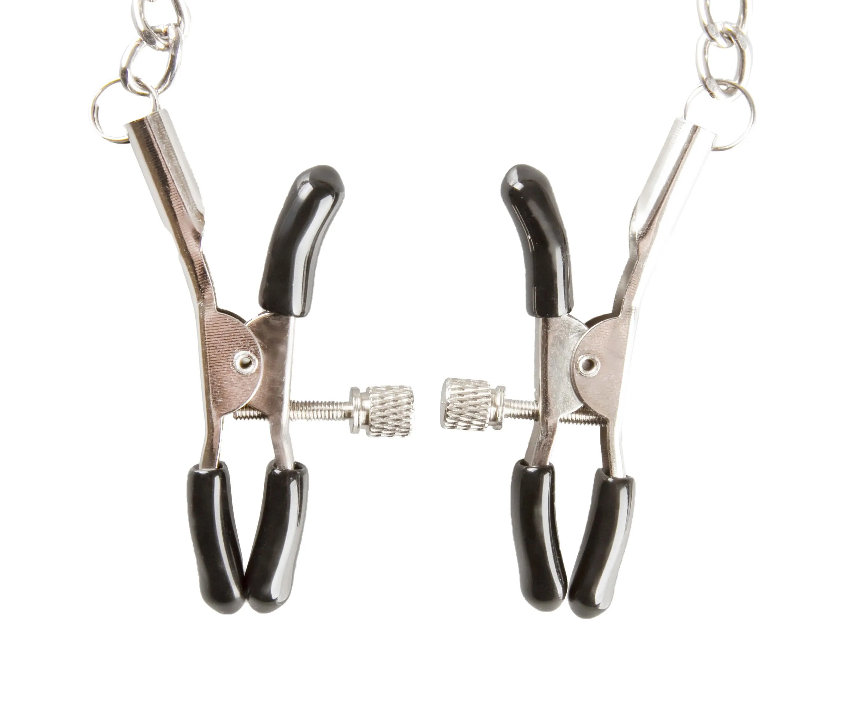 Зажимы для сосков - это аксессуар, который идеально подойдет тем, кто хочет разнообразить свои сексуальные игры, добавив в них элемент БДСМ. Данная модель соединяет два зажима цепью, которая будет слегка подергивать их под тяжестью своего веса.
