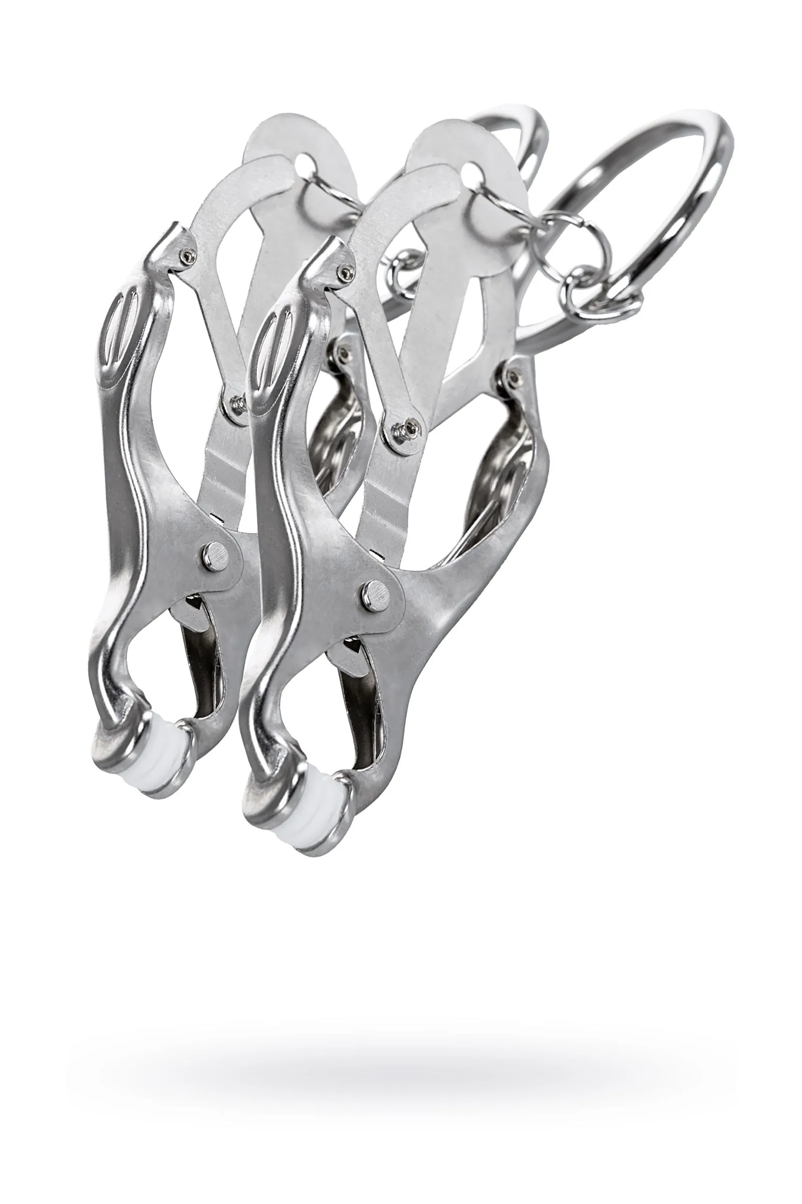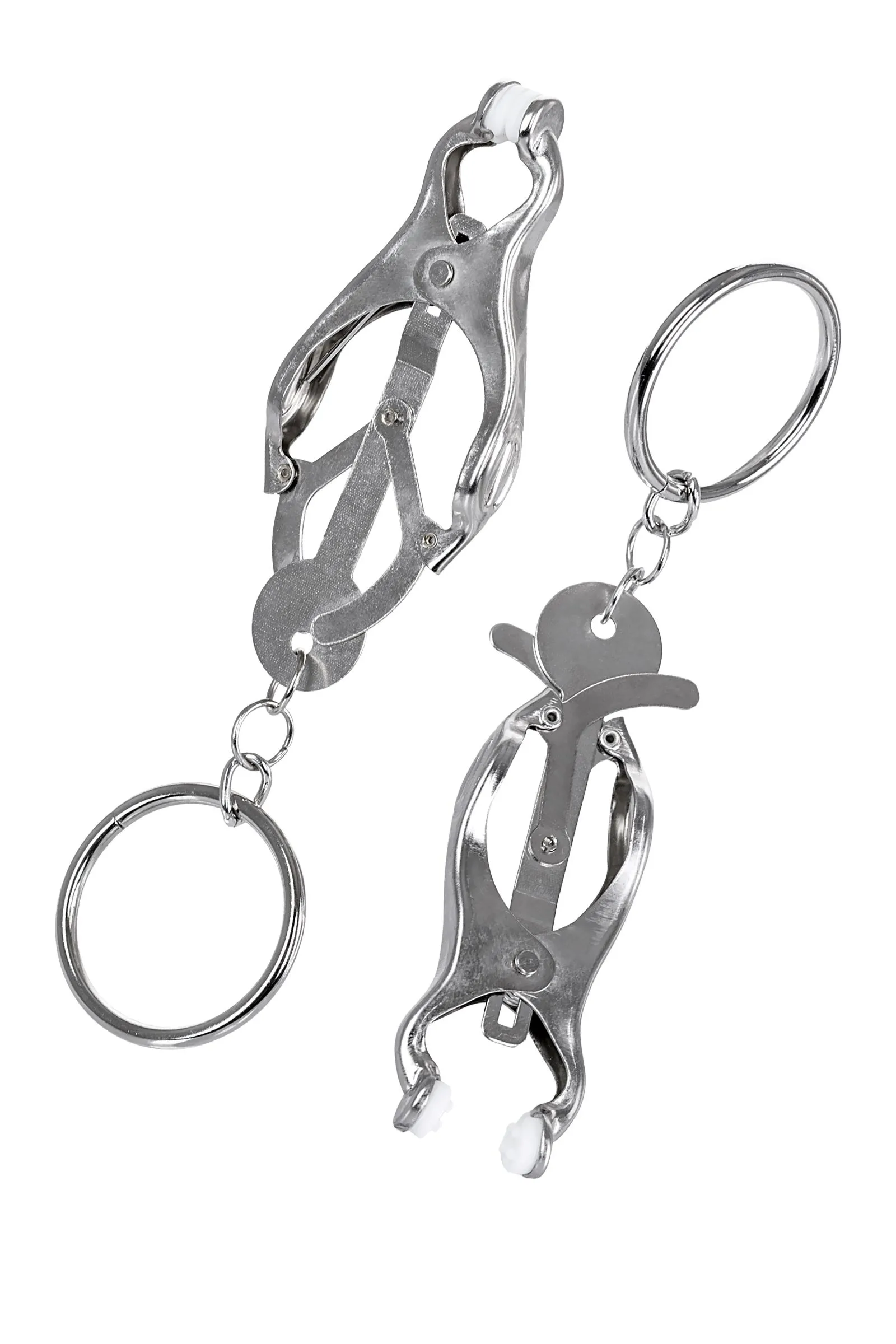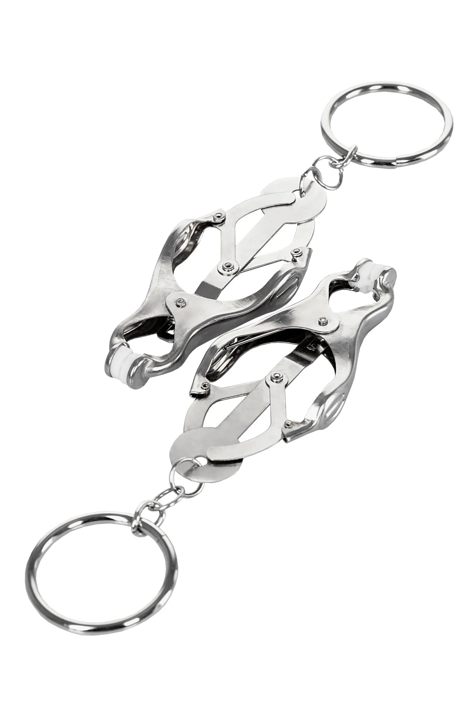 Зажимы для сосков с пружинным механизмом. Эта конструкция одна из самых жестких, но позволяет разнообразить игру: на кольцах можно подвесить дополнительные грузы или украшения. Все зависит от ваших желаний!