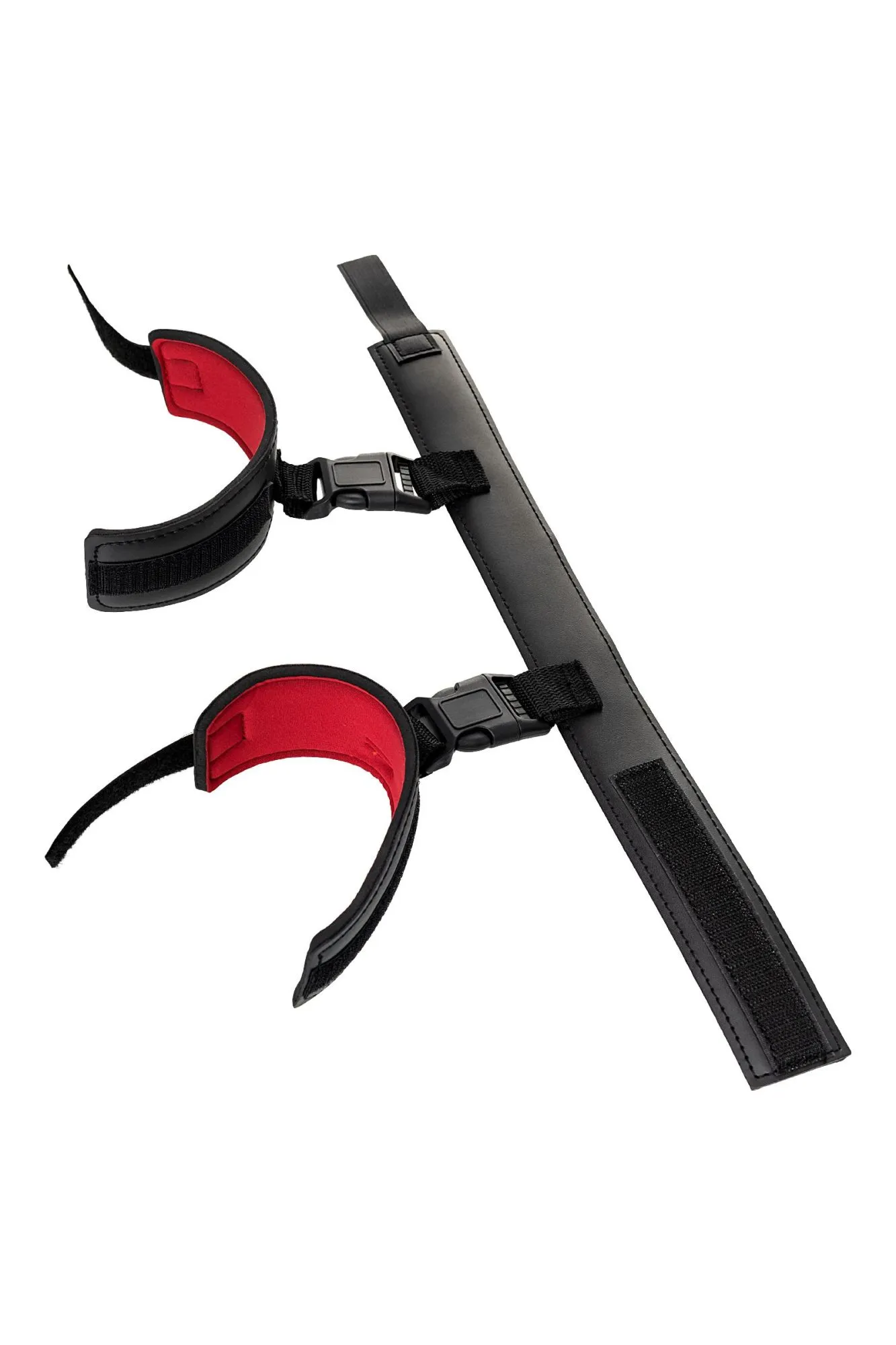Ошейник с наручниками Современный комплект из мягкого материала комфортно обовьет шею и ограничит свободу рук. Застежка велкро (липучка) дает возможность использовать его партнером любого размера, так что меняйтесь ролями в зависимости от настроения! Пластиковые карабины на ошейнике и наручниках надежно фиксируют руки совсем рядом с шеей, не оставляя никакой свободы действий. С таким комплектом ограничить движения партнера легко в любом месте. Этот строгий аксессуар скрывает внутри страстный красный цвет так же, как вы скрываете свое увлечение БДСМ в обычной жизни. Управляйте друг другом, ограничивая свободу партнера, но не ограничивая своих сексуальных желаний. Длина ошейника 44 см Ширина ошейника 4,5 см Длина наручников 22 см Ширина наручников 6 см Застежка: липучка - велкро Материал: PVC В фотосессии на модели использованы пэстис Theatre 705006