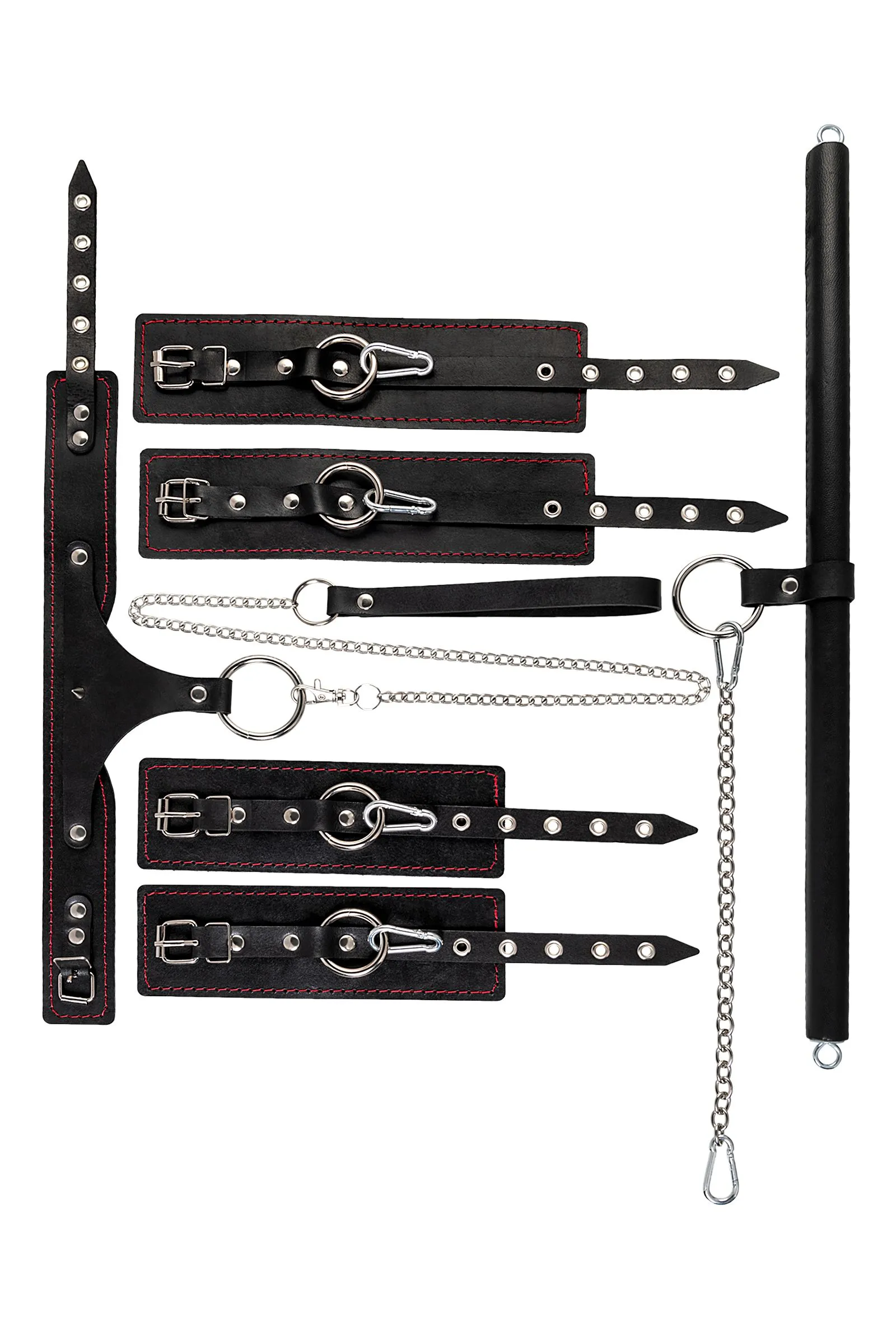 Готовы играть по-взрослому? С набором от Pecado BDSM воплощайте в жизнь смелые сексуальные фантазии, которые до этого момента были только мечтой. Хотите избавиться от искушения? Просто поддайтесь ему с Pecado BDSM! Набор для бандажа состоит из большой распорки с тремя точками крепления и пары оков и наручников, и ошейника с кольцом, всё это в фирменной деревянной коробке Pecado BDSM. С этим набором расширить возможности и способы фиксации проще простого! Варианты и комбинации ограничения свободы партнера зависят от вашей фантазии и желаний. Распорка позволяет зафиксировать ноги партнера в широко разведенной позиции. Частичное обездвиживание и невозможность двигать руками или ногами дают вам полную власть над партнером – взрослые игры для взрослых. Кольцо посередине распорки позволяет использовать дополнительные аксессуары, либо приковать партнера к кровати или другому предмету и экспериментировать с позициями и ощущениями. Pecado BDSM – российский бренд, использующий высококачественные материалы и надежную, проверенную временем фурнитуру. Все изделия изготавливаются вручную из натуральной кожи, безопасный и экологичный материал не оставляет повреждений на запястьях. Натуральная кожа, металлические крепления и ремешки дают уверенность в надежной фиксации, устойчивости к механическим нагрузкам и долговременном использовании. Ширина оков - 6,5 см, длина оков - 25 см. Ширина наручников - 6,5 см, длина наручников - 20 см Длина распорки - 50 см. Три точки фиксации - одно кольцо и два карабина.