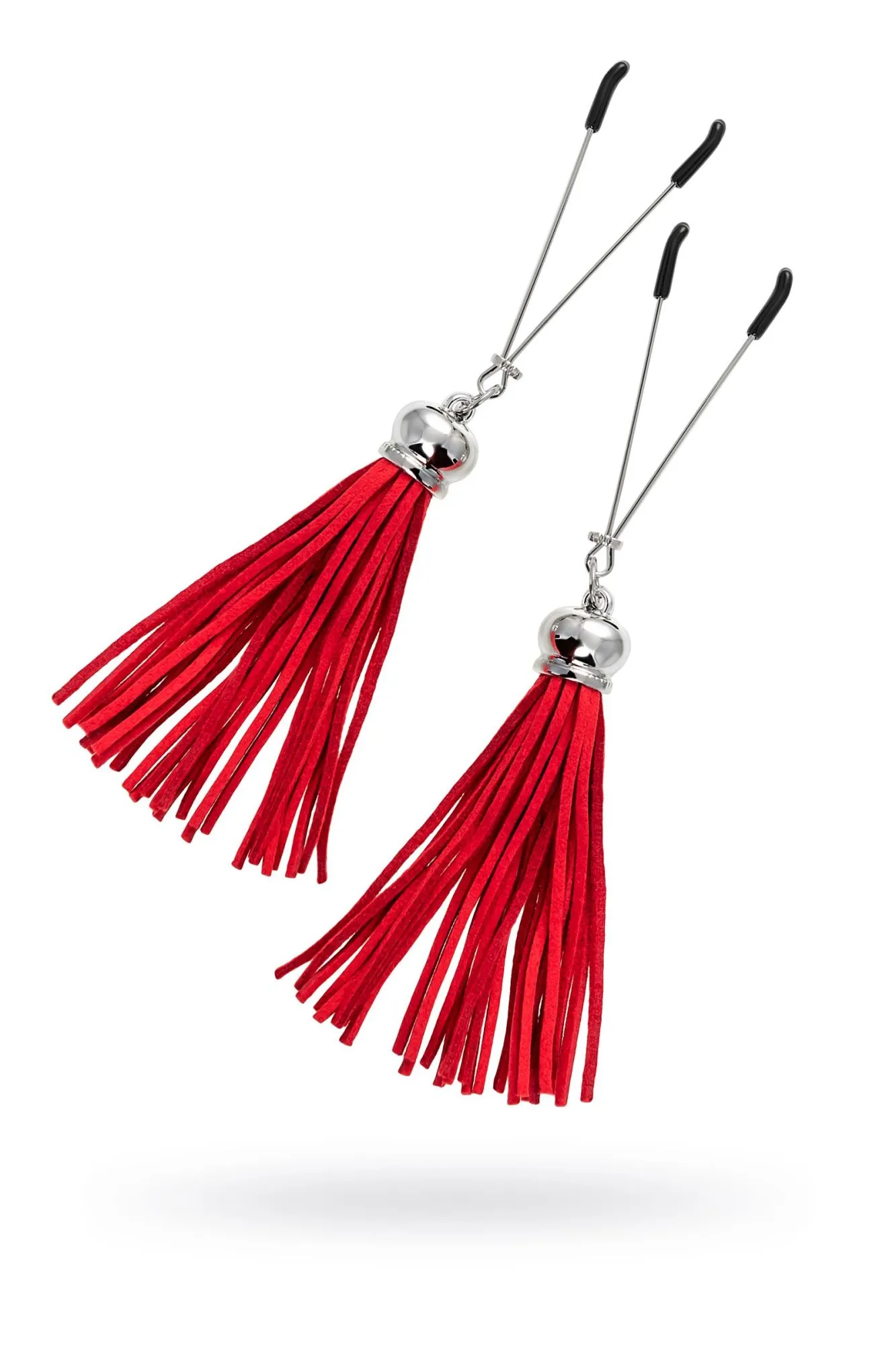 Попробуйте новые, дерзкие ощущения глубокого наслаждения! Зажимы-вилки от Pecado гарантируют смешение ярких чувств от тактильного контакта с нежной кожей сосков. Зажимы выполнены из высококачественных материалов. Металлическая часть компактная, приятная на ощупь. На концах черные резиновые наконечники, для безопасного воздействия на эрогенные зоны. Интенсивность сжатия аксессуара регулируется миниатюрными колечками. В зависимости от личных предпочтений и сценария игры, можно выбрать легкое пощипывание, или сильное сдавливание. Бахрома из натуральной замши, в насыщенном красном цвете , добавляет манящую красоту смелому атрибуту. При каждом соблазнительном покачивании груди, кисточки движутся в пикантном ритме. Также подходит для стимуляции и возбуждении в области половых губ и клитора. ● Ручная работа. ● Надежная высококачественная фурнитура. ● 100% натуральная замша. ● Не требуют специального ухода.