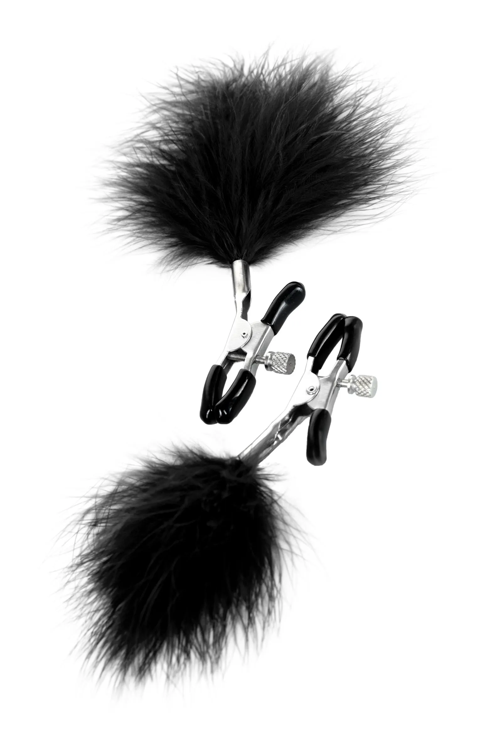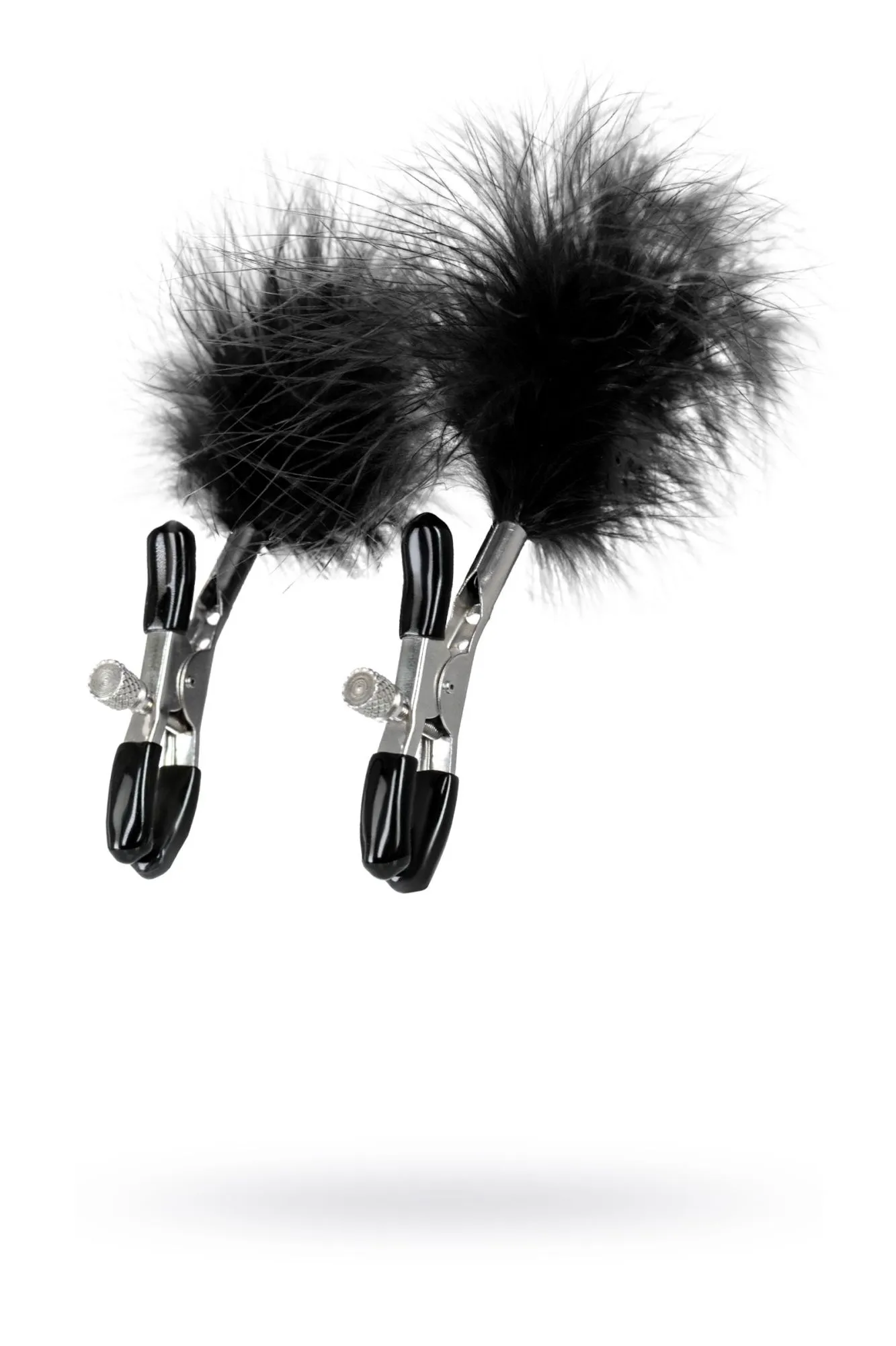 Пожалуй, самые милые из всех зажимов - украшенные перьями. Они стимулируют не только сжатием сосков, но и щекочут грудь. Сдавливание регулируется болтиком и может быть усилено или уменьшено во время интимной игры. Покрытие на концах зажимов защищает нежную кожу.