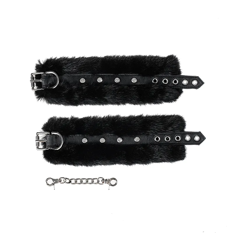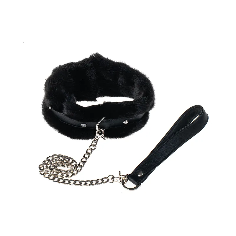 В комплект входят: плетка, игривый ободочек с ушками, ошейник, наручники и наножники. Всё выполнено из натуральной кожи чёрного цвета и натурального меха норки.