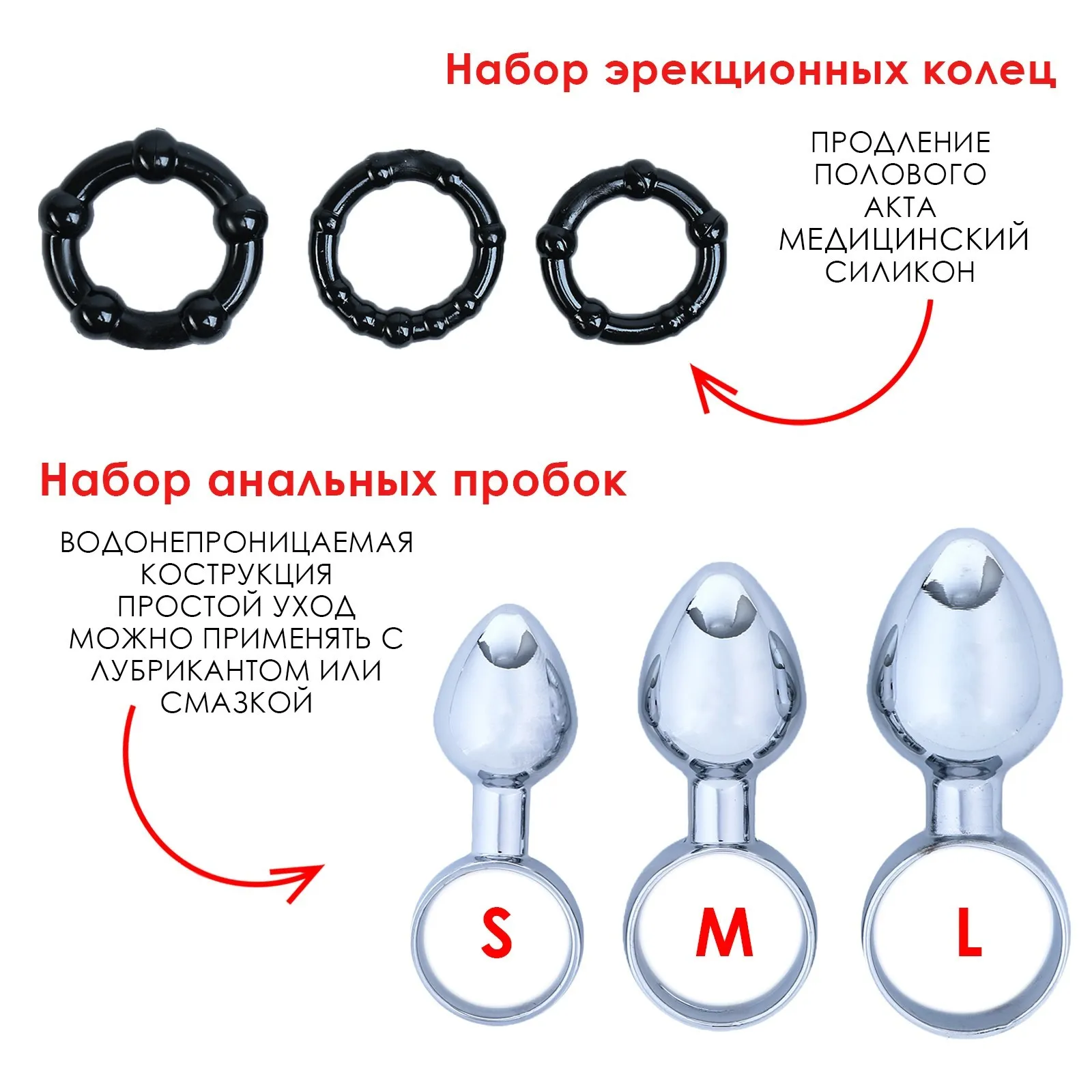 - Набор анальных пробок из медицинской стали. Набор поможет постепенно растянуть и подготовить мышцу к анальному сексу. Анальная пробка подойдёт для ношения, ограничитель на основании не позволит игрушке ускользнуть в прямую кишку. Пробка подарит ощущение наполненности и создаст эффект двойного проникновения.