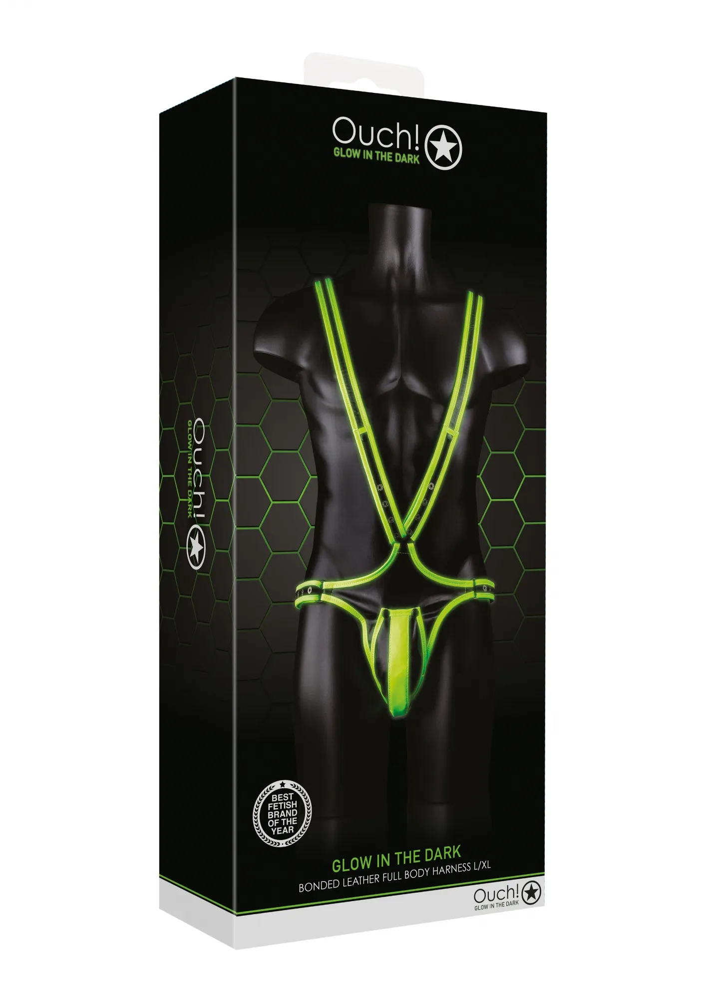 Экстравагантная мужская сбруя с трусами на заклепках для удобного доступа и комфортного ношения. Выполнена из высококачественной экокожи и оформлена люминисцентными полосками. В темноте будут светиться все самые интересные места.