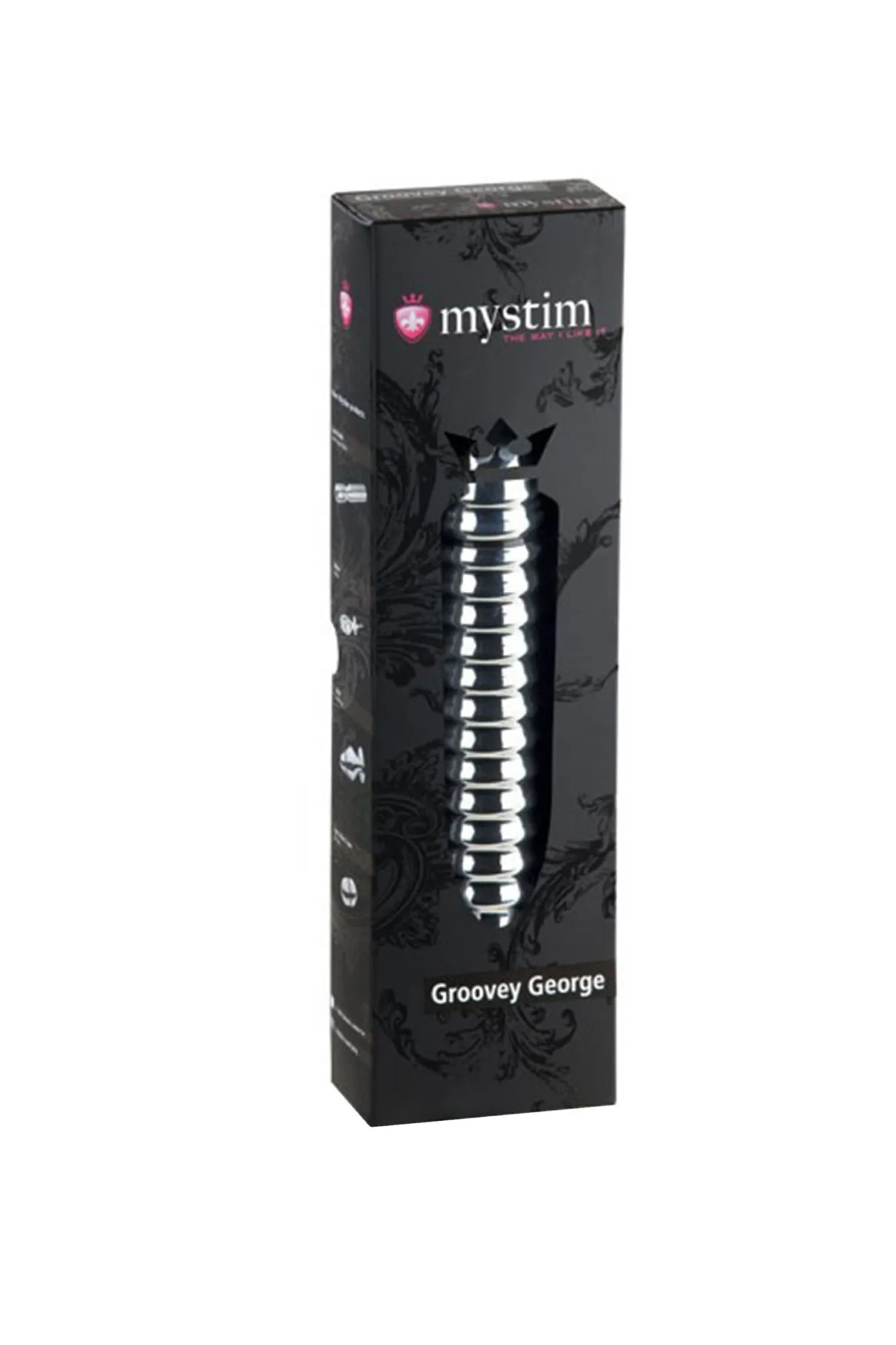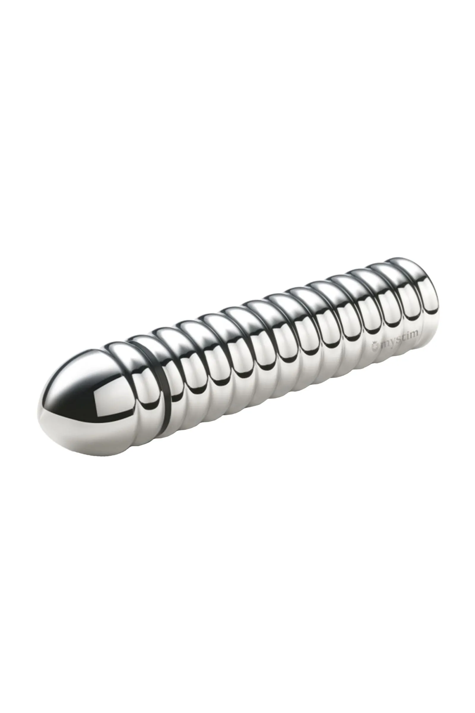 —Электростимулятор фаллоимитатор Mystim Groovey George, хирургическая сталь, серебряный, 20 см
