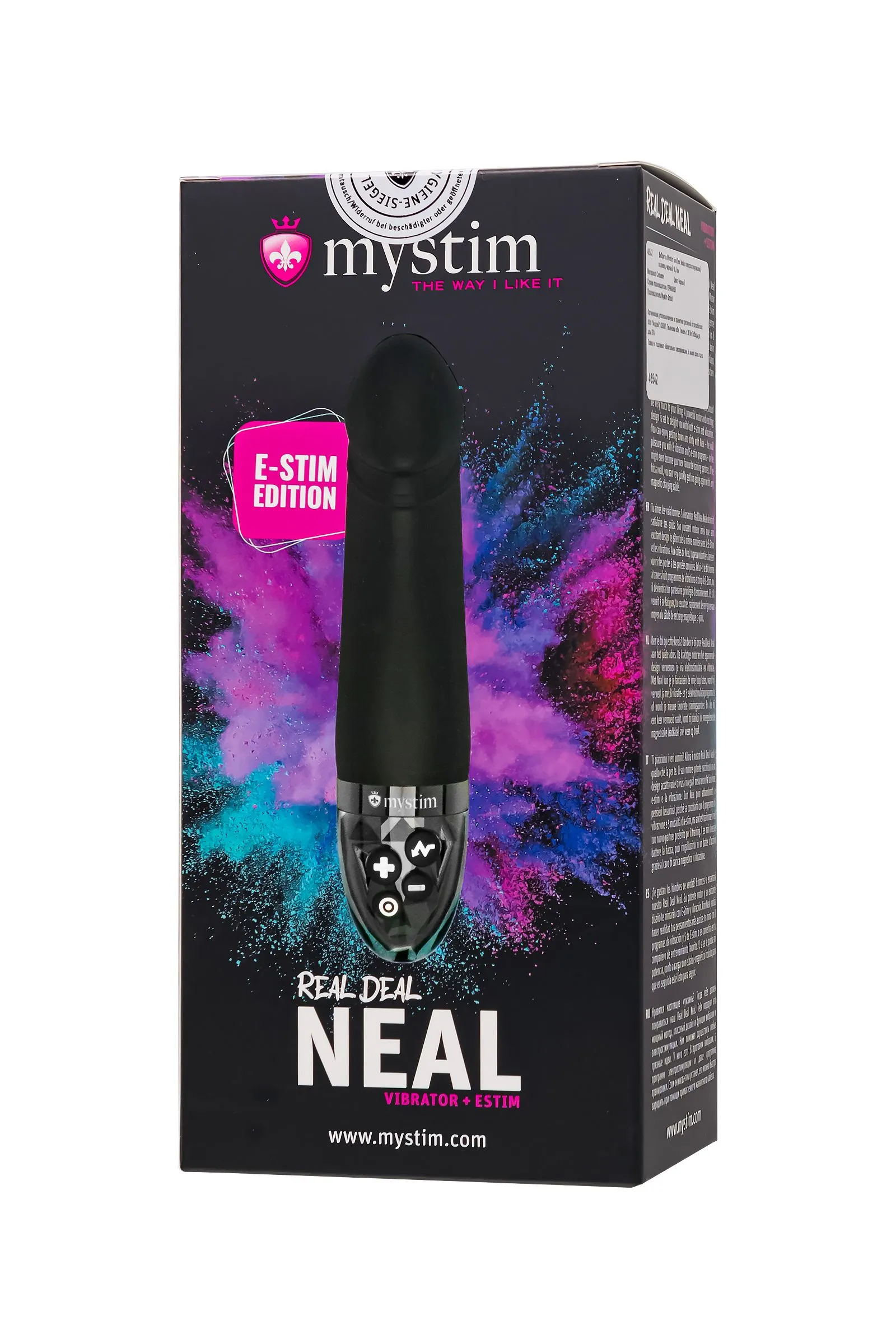 Mystim Real Deal Neal – утонченный массажер, созданный для высокоточной стимуляции зоны G. Этот изысканный вибратор объединяет множество вариантов вибрации и электростимуляции, гарантируя неповторимые ощущения. Созданный с заботой о деталях, Real Deal Neal обладает изогнутым кончиком из медицинского силикона, смоделированным по образу головки пениса, для максимально точной стимуляции. С рабочей длиной 11,5 см и максимальным диаметром 3,6 см, он идеально подходит как для новичков, так и для опытных пользователей. 8 режимов вибрации и 5 уровней интенсивности позволяют настроить интимный опыт под ваши предпочтения. Однако истинная изюминка кроется в 5 уникальных программах электростимуляции с 10 уровнями интенсивности. От нежных вибраций до интенсивных волн возбуждения, электрические импульсы обостряют чувствительность и ведут вас к насыщенным оргазмам. Важно отметить, что электростимуляция имеет свои ограничения и не рекомендуется при наличии металлических имплантов, сердечных заболеваний или беременности. Перед покупкой обязательно изучите инструкцию, чтобы обеспечить безопасный и удовлетворительный опыт. Real Deal Neal не только обещает удовольствие, но и заботу о вашем здоровье. С шестым режимом, предназначенным для тренировки мышц тазового дна, он способствует поддержанию женского здоровья и усилению удовольствия. Этот режим укрепляет мышцы через последовательное сокращение и расслабление, позволяя более глубоко ощущать свое тело и наслаждаться яркими моментами во время секса. Сделанный из медицинского силикона, Real Deal Neal гарантирует приятные ощущения и бережное отношение к коже. Элегантный и современный дизайн добавляют ему неповторимости. Для дополнительного комфорта используйте лубрикант на водной основе. Совершенная ручка-держатель выполнена из прозрачного ABS-пластика с зеркальными элементами, добавляя шик в вашу интимную жизнь. Удобные кнопки на ручке позволяют выбрать желаемый режим. Вибратор оснащен функцией блокировки от случайных нажатий, обеспечивая удобное и безопасное управление. Следует отметить, что перед первым использованием следует разблокировать игрушку, зажав кнопку смены вибрации и кнопку «-» или «+» в течение 3 секунд. 8 программ вибрации 5 программ электростимуляции с 10 уровнями интенсивности 1 программа тренировки мышц тазового дна Имитация реалистичного дизайна Оптимально компактные размеры Длина 16,5 см, диаметр 3,6 см Изготовлен из 100 % медицинского платинового силикона. Цвет - глубокий черный Магнитное зарядное устройство Mystim и USB-зарядное устройство в комплекте Время зарядки - 120 мин, время работы - 90 мин.