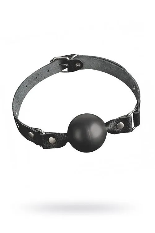 Ремешок изготовлен из натуральной кожи. Никелированная пряжка. Шар изготовлен из латекса. Размер универсальный. Один из самых распространённых атрибутов BDSM.