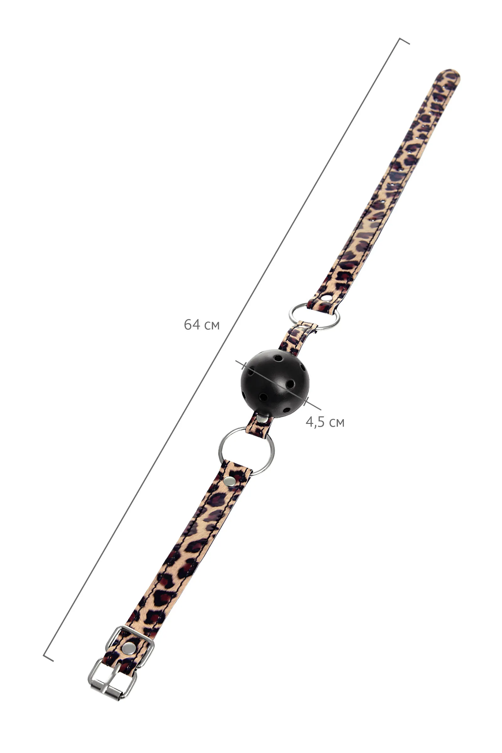 Искусство красноречивого взгляда – все что остается, ведь невозможно произнести ни слова в этом кляпе – только слушать и подчиняться. Можно скрежетать зубами по пластику, но вдруг Доминант рассердится и накажет еще сильнее? Специальные отверстия для воздуха делают ношение кляпа безопасным и комфортным. Удачное сочетание леопардовой расцветки и металлической фурнитуры делает образ сексуальным и загадочным, добавляя в образ элемент хищника. Ремешок фиксируется на голове металлической пряжкой и подходит для любого размера головы. Игра в послушную зверюшку или непокорного хищника…. Уже представили? Дополните образ аксессуарами той же расцветки и наслаждайтесь обществом друг друга. Материал: PU кожа, пластик Цвет: леопардовый, черный Общая длина: 64 см Диаметр кляпа: 4,5 см