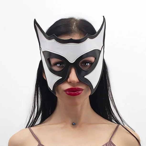 В этой стильной маске великолепно сочетаются белый и черный цвета. Выглядит она очень эффектно благодаря оригинальной форме. Выполнен данный аксессуар из натуральной кожи, это авторская ручная работа. Такая маска-очки отлично дополнит эротический образ в стиле БДСМ. Если Вам близко данное направление, то и этот атрибут для интимных игр Вам понравится.