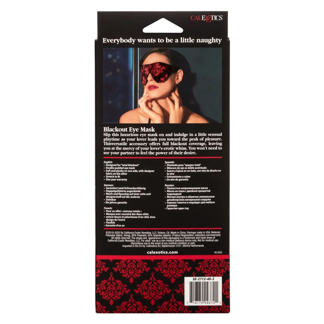 Scandal Blackout Eye Mask - идеальная повязка на глаза закрытого типа для сенсорной игры или насладиться отличным ночным отдыхом. Для дополнительного комфорта внутренняя сторона имеет бархатистую мягкую подкладку, исключающую нежелательный дискомфорт и раздражение кожи. Толстый эластичный ремешок надежно удерживает маску и обеспечивает плотное прилегание.