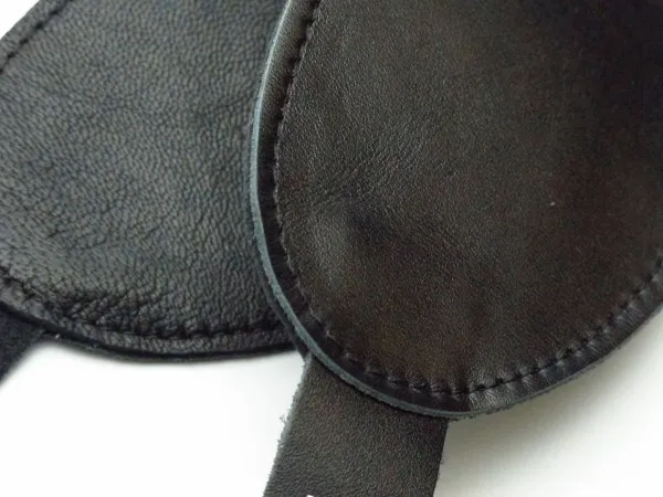 Маска из натуральной кожи черного цвета. Крепится к голове при помощи удобных ремней с пятью делениями. Длина маски - 20 см., ширина - 7 см. Упаковка: картонная подложка.