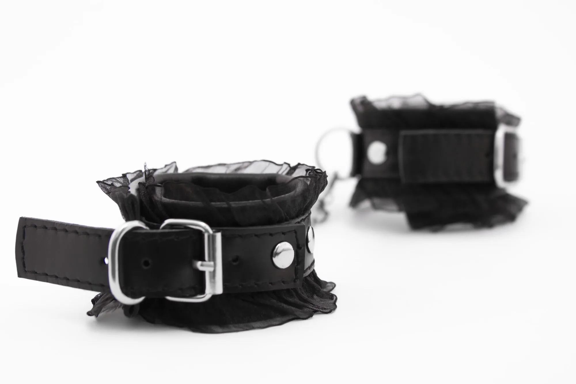 —Наручники из кожи с рюшами