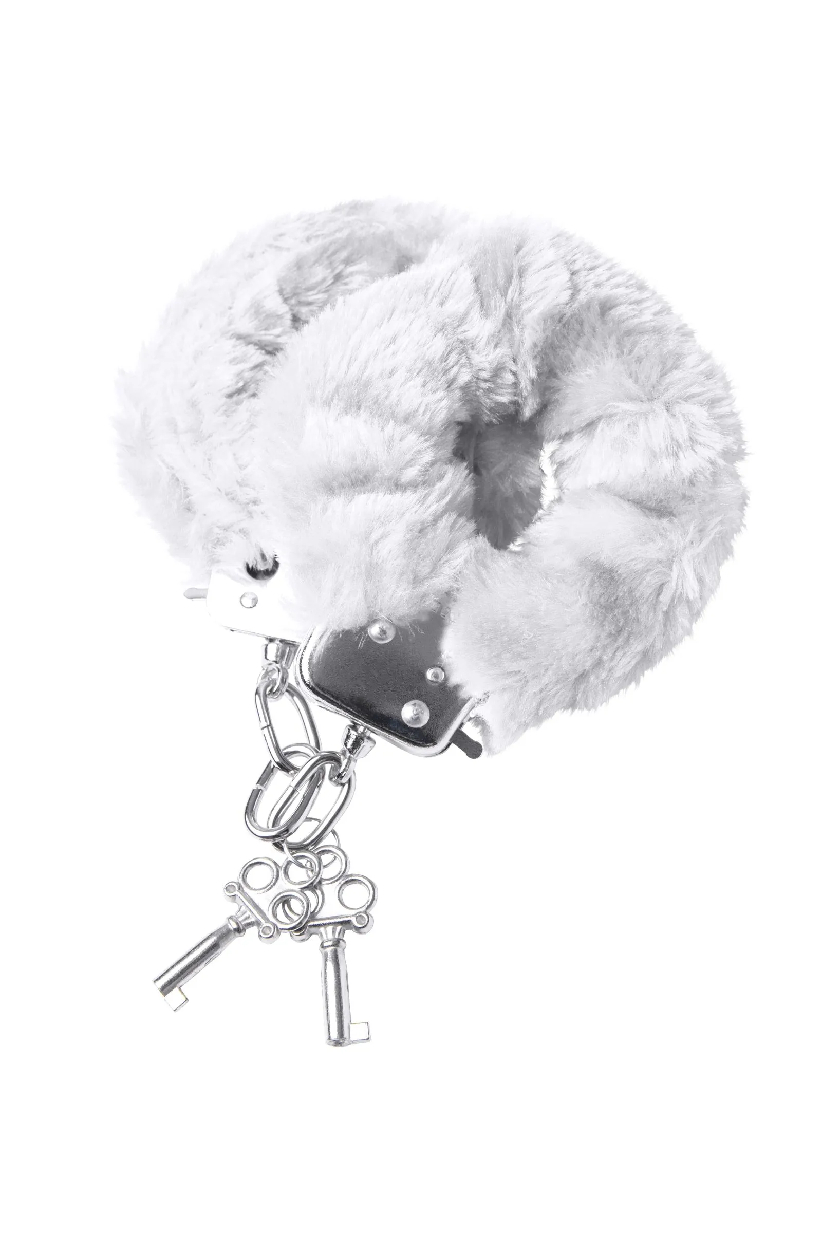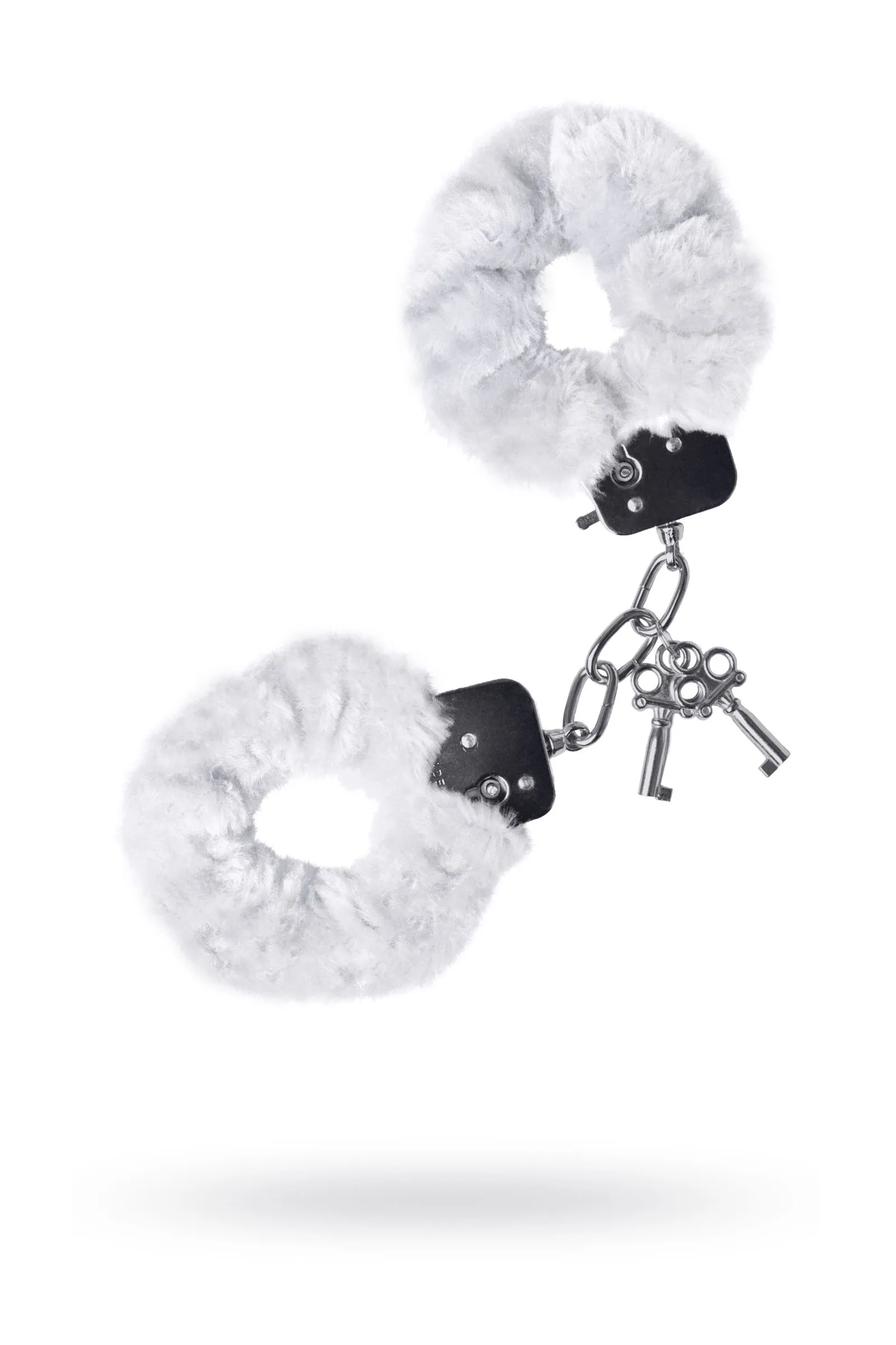 Наручники с металлическим основанием, декорированные белым искусственным мехом. С 2 ключами в комплекте. Регулируемый механизм позволяет сковывать как женские, так и мужские руки. На случай утери ключей или необходимости быстрого освобождения, предусмотрен рычажок быстрого открытия.
