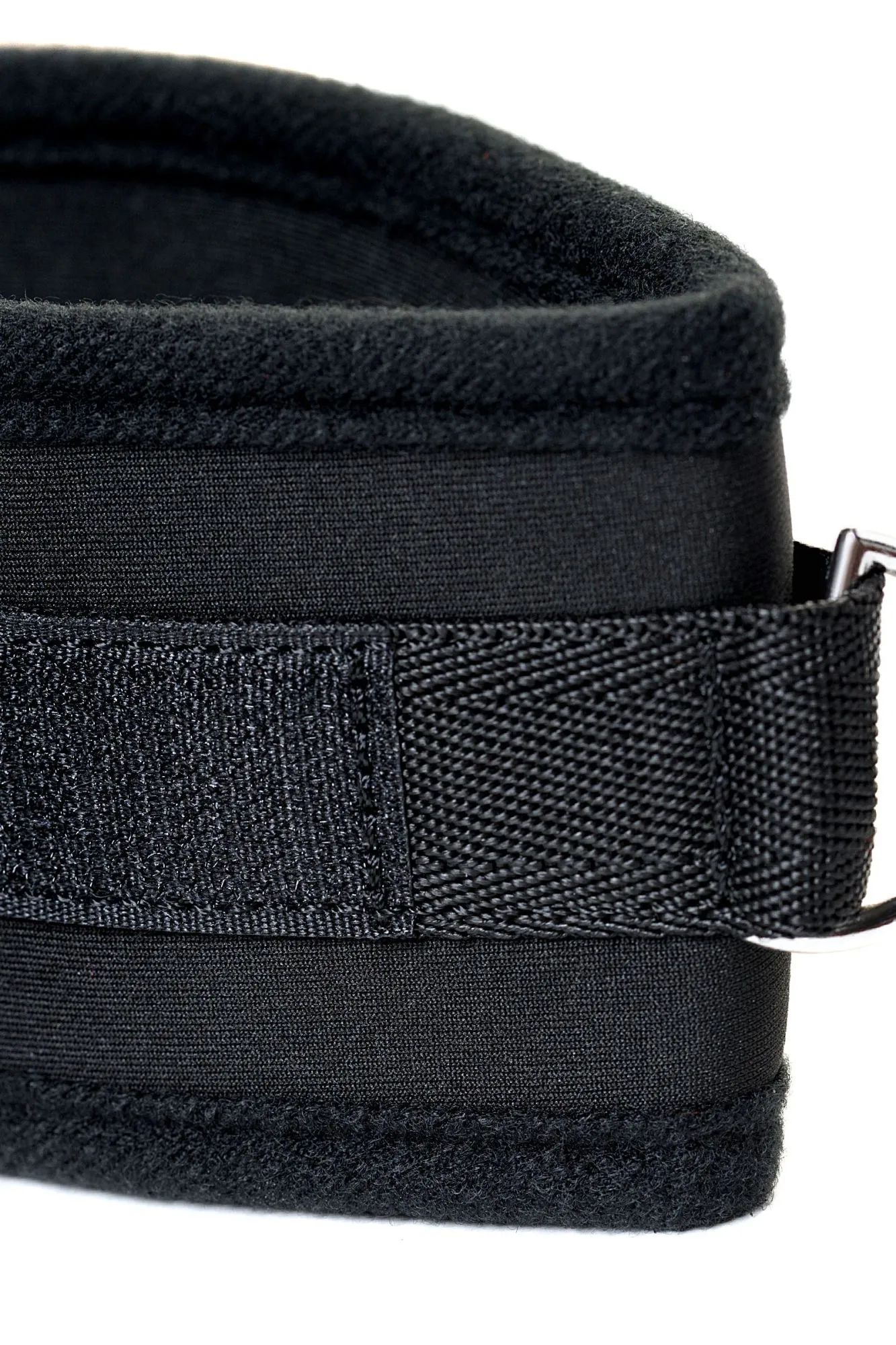 Оковы на ноги черные неопреновые. Мягкие оковы с застежкой велкро, позволяющей максимально регулировать объем. Между собой манжеты соединены карабинами. сцепка 10 см