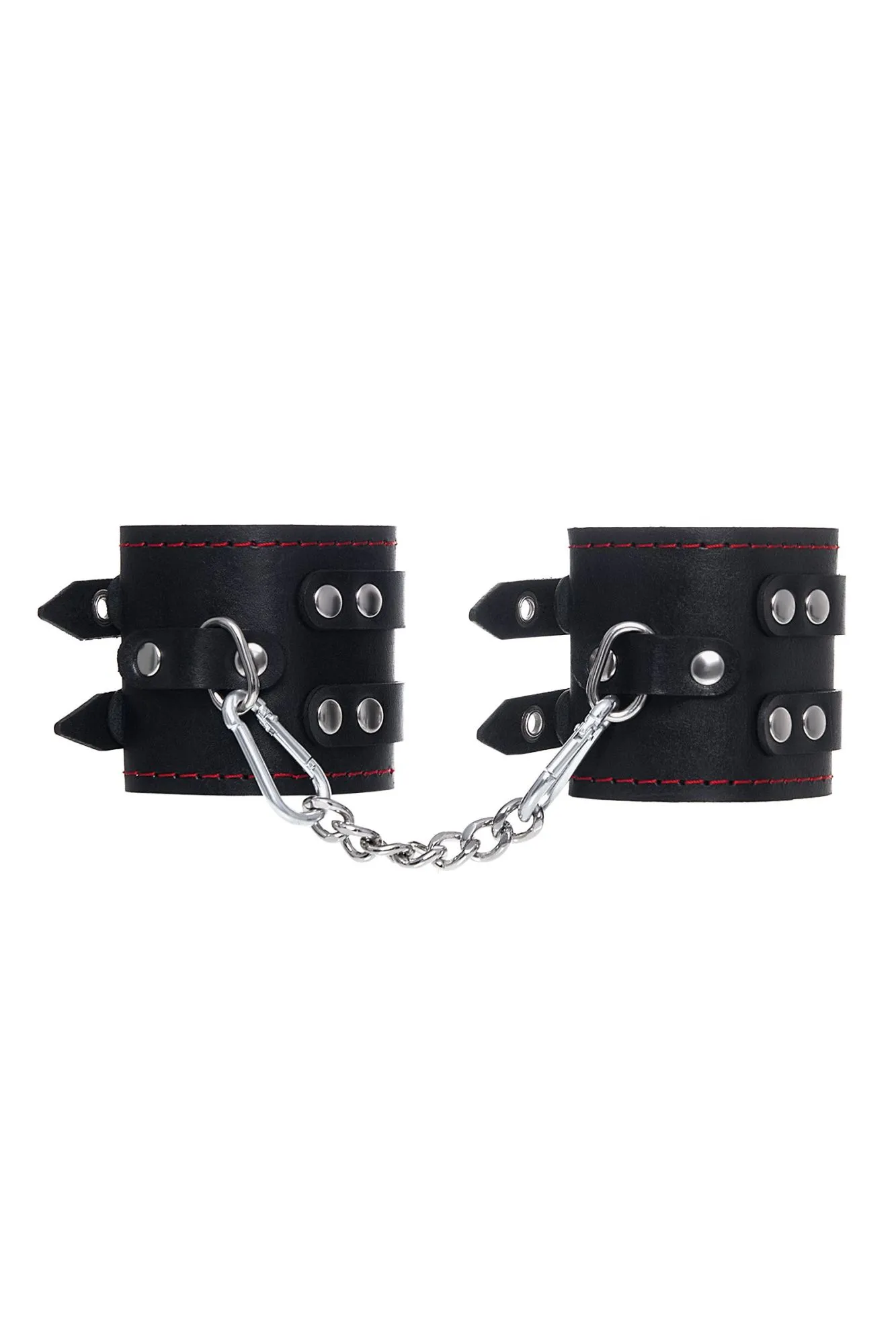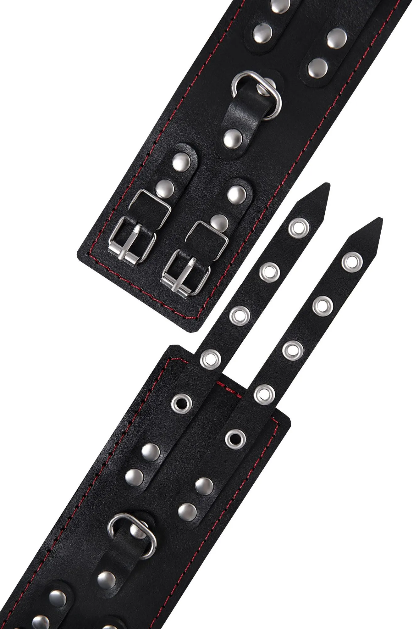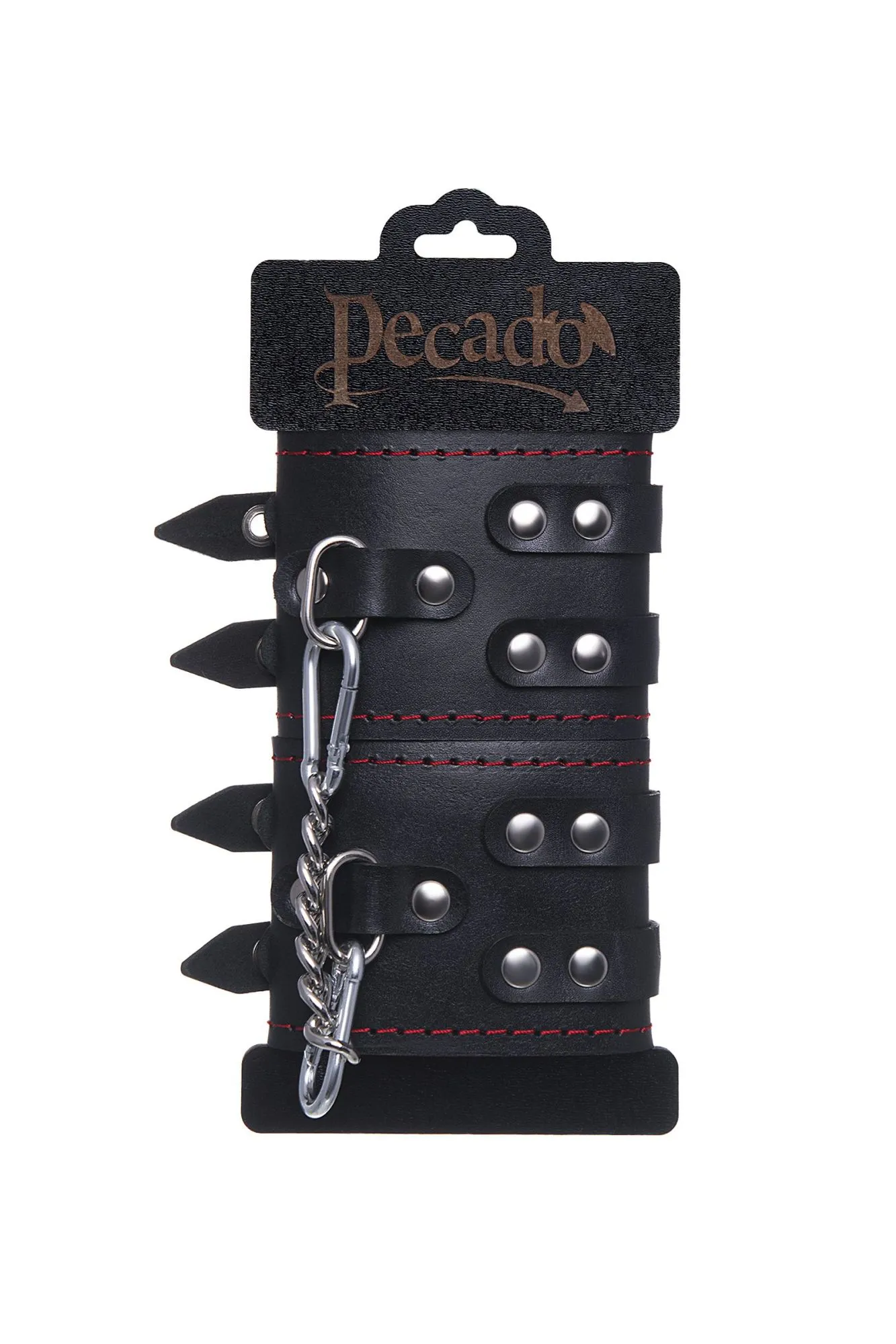 Наручники Pecado BDSM, с двумя ремнями и черной подкладкой, натуральная кожа, черные