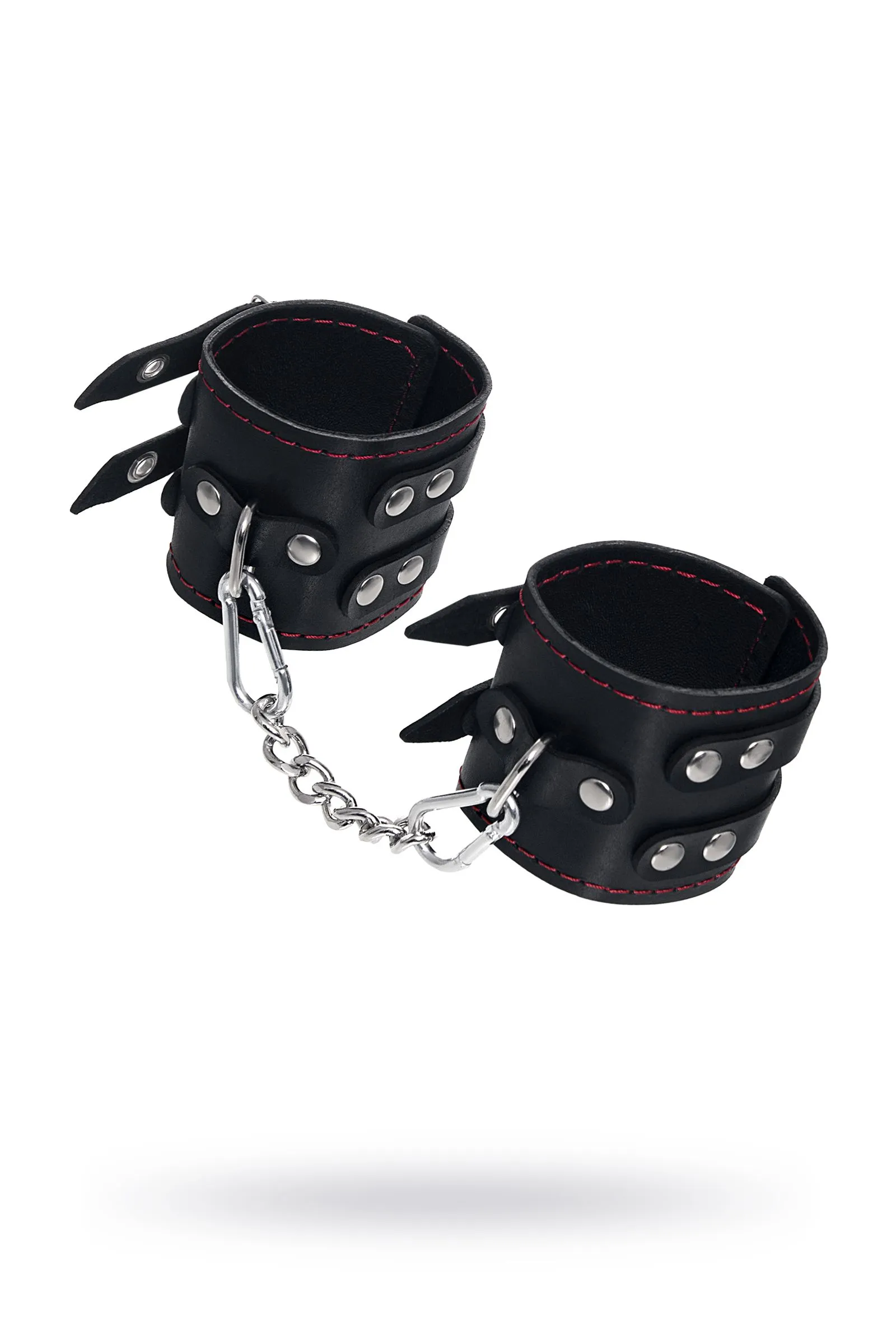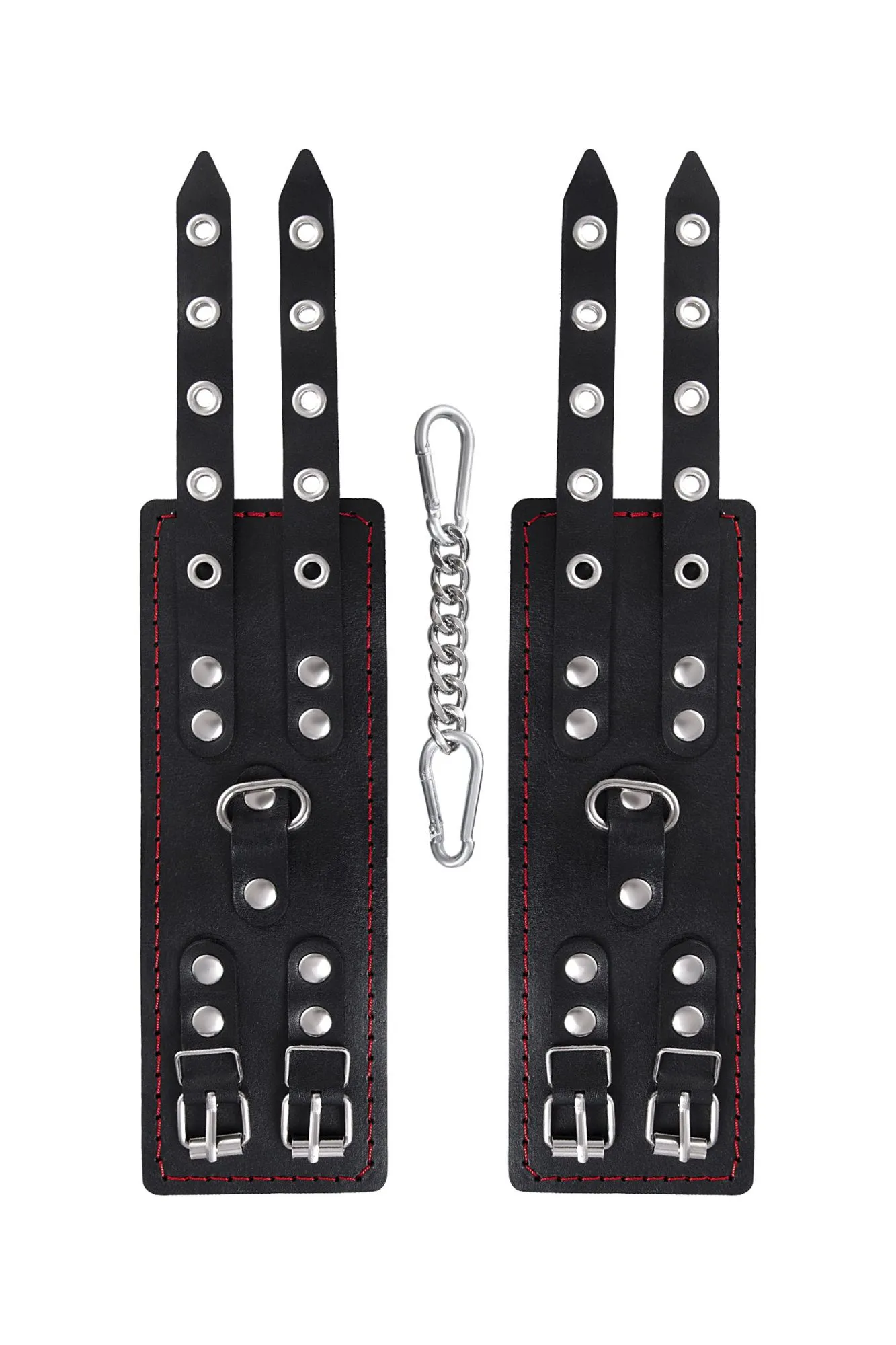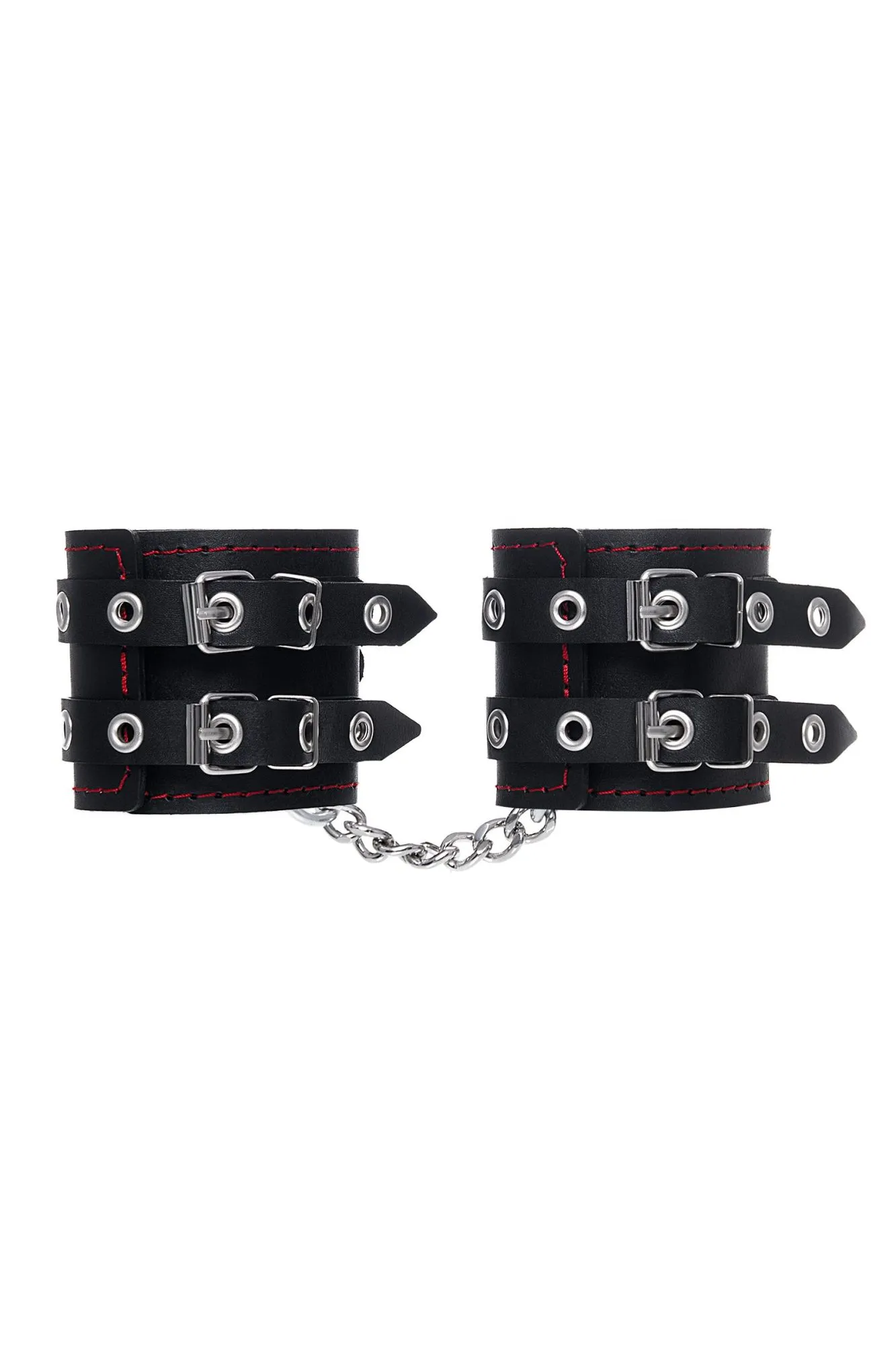 Наручники Pecado BDSM, с двумя ремнями и черной подкладкой, натуральная кожа, черные