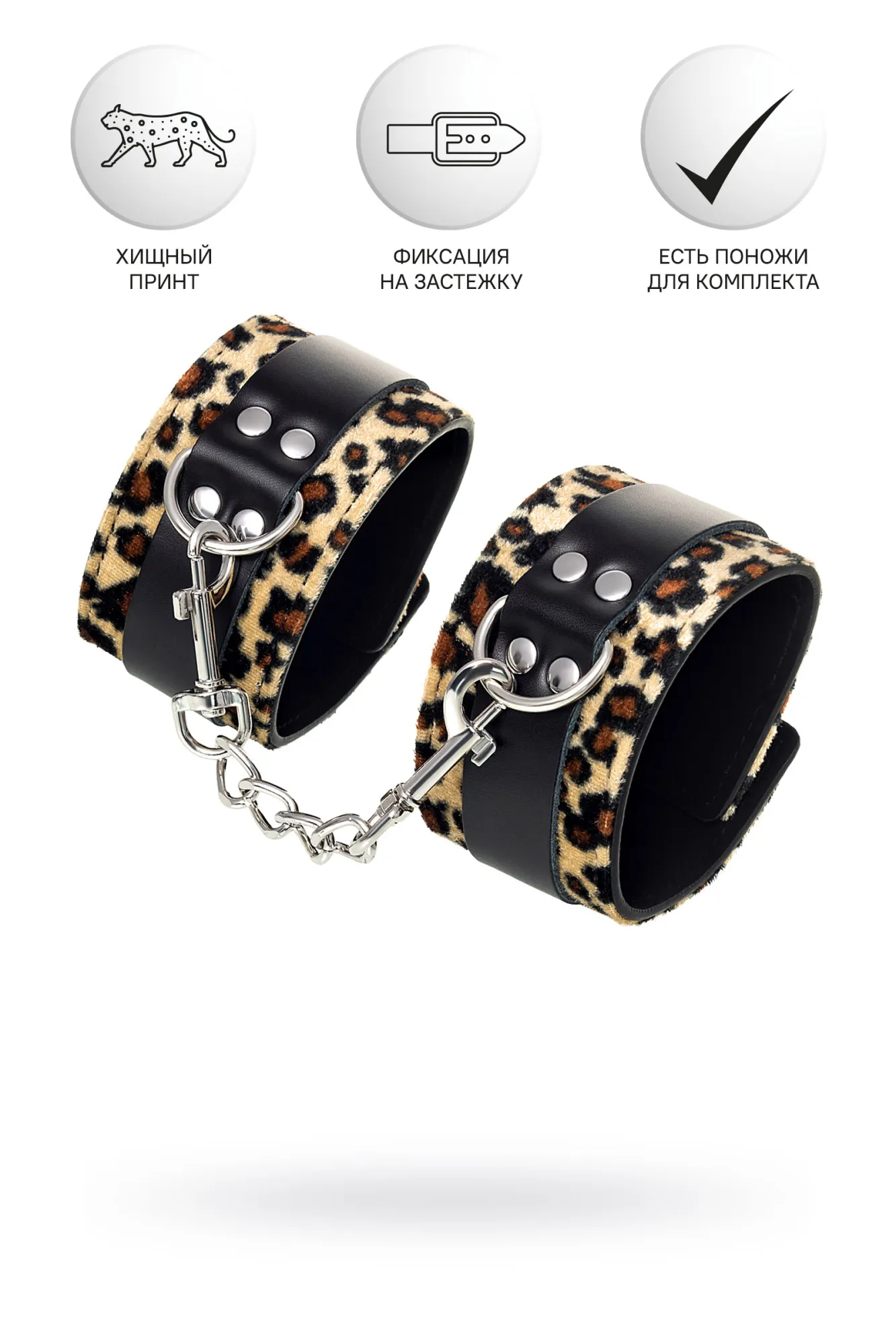 Наручники – классический предмет для игры в подчинение, обязательный для начинающих и опытных поклонников БДСМ. Эти яркие наручники с леопардовым принтом сделают подчиненного неотразимым. Леопардовый окрас демонстрирует агрессивный вид. Все звериное нутро, страсть и свобода призывают действовать. Они отлично сковывают движения благодаря металлической застежке на пряжку. Никакого послабления, только полное подчинение своему Доминанту, где бы ни были зафиксированы руки: впереди или за спиной. Подкладка выполнена из мягкого материала, не причиняет дискомфорта и тактильно приятна. Размер фиксируется ремешком, поэтому наручники подходят для запястья любого размера. Начните игру в подчинение с этим аксессуаром, и вы поймете, как развивать свою чувственность с помощью ограничения свободы одного из партнеров. Дополните комплект аксессуарами - ошейником, кляпом, оковами и продемонстрируйте что значит грубое обращение и полный контроль над свободой. Материал: PU кожа, искусственный мех Цвет: черный, леопардовый Длина: 19,5 см Ширина: 5,5 см Длина сцепки: 15,5 см
