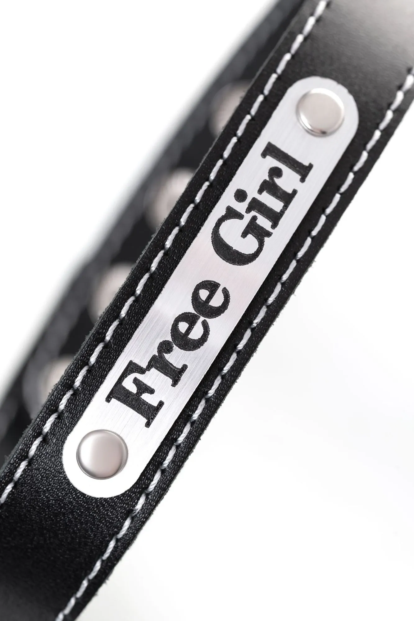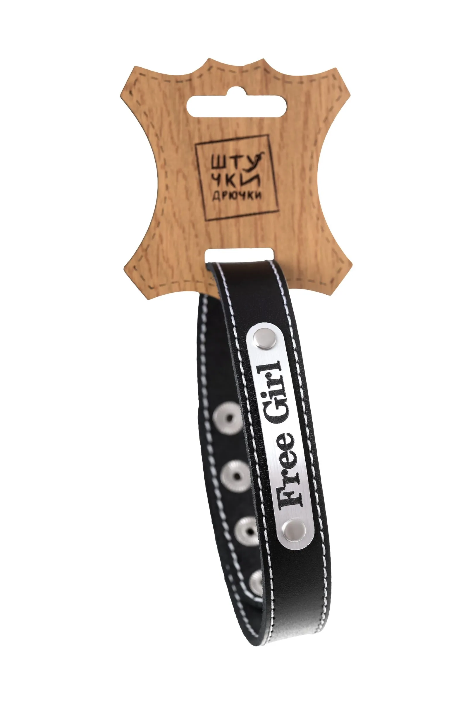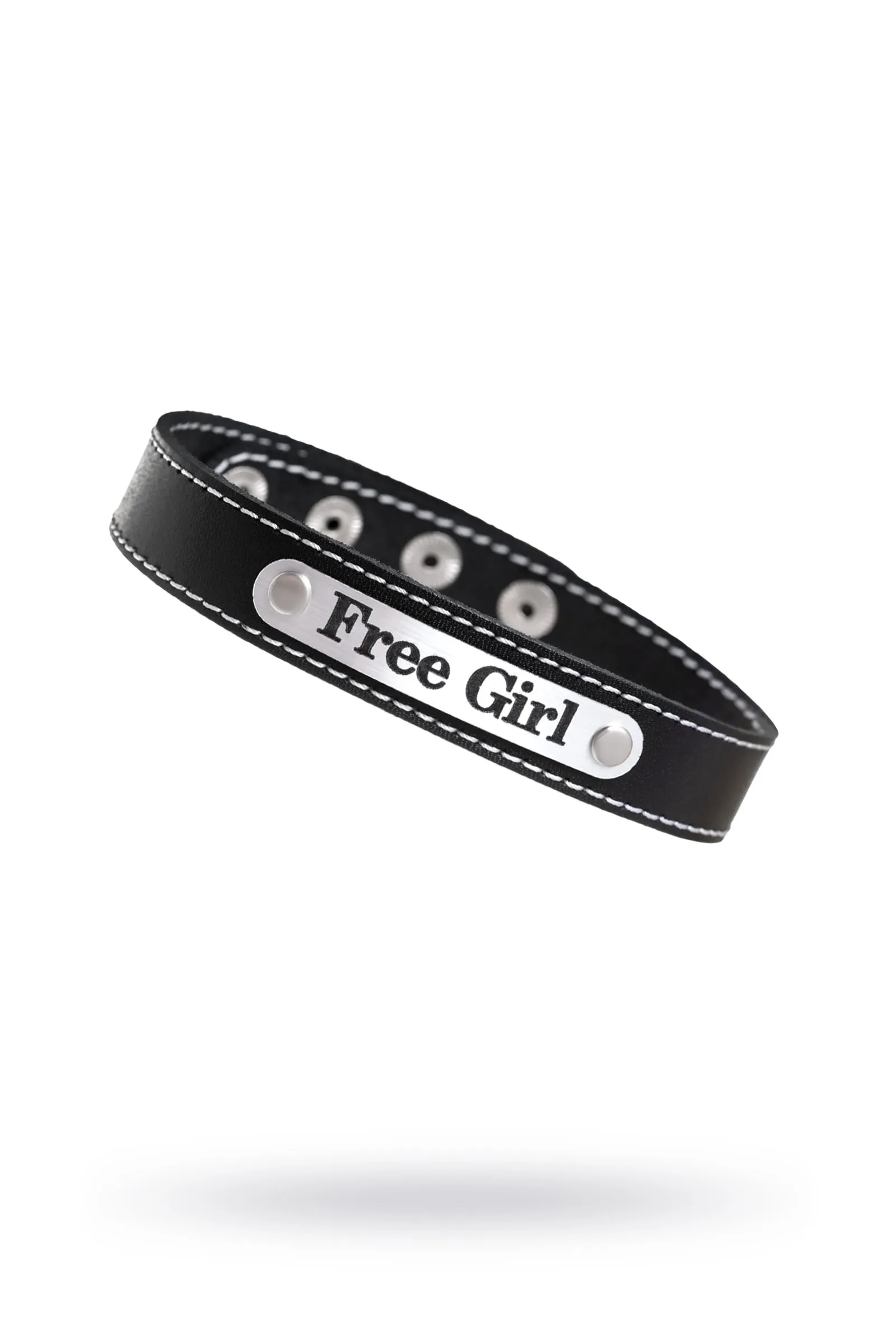 Чокер изготовлен из натуральной кожи и дополнен вставкой под металл с надписью Free Girl. Регулируется при помощи кнопок. Общая длина 41 см