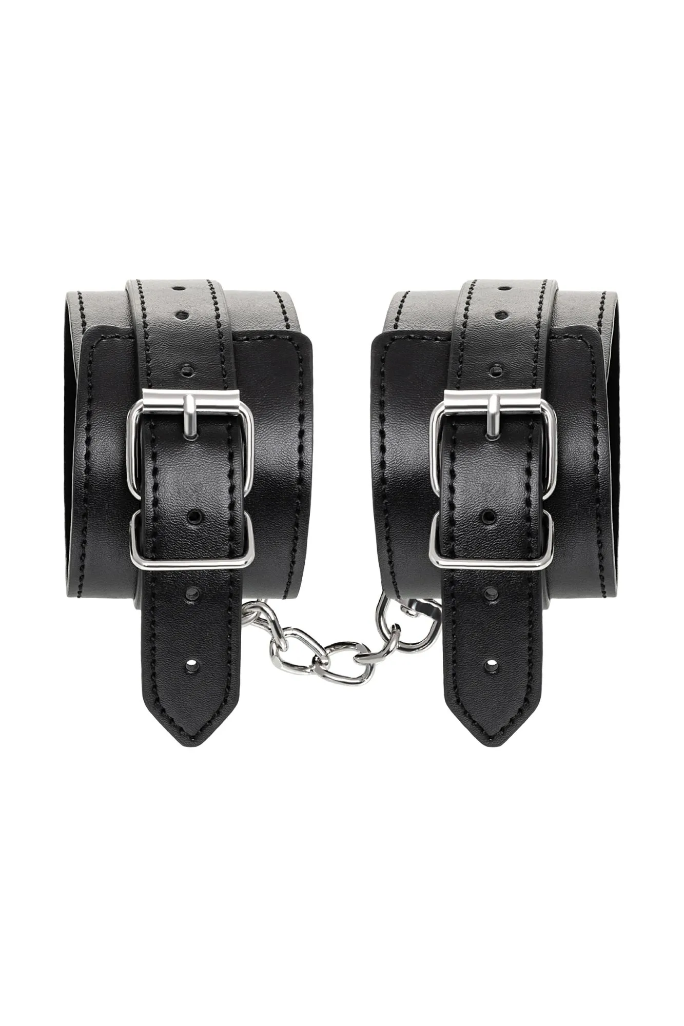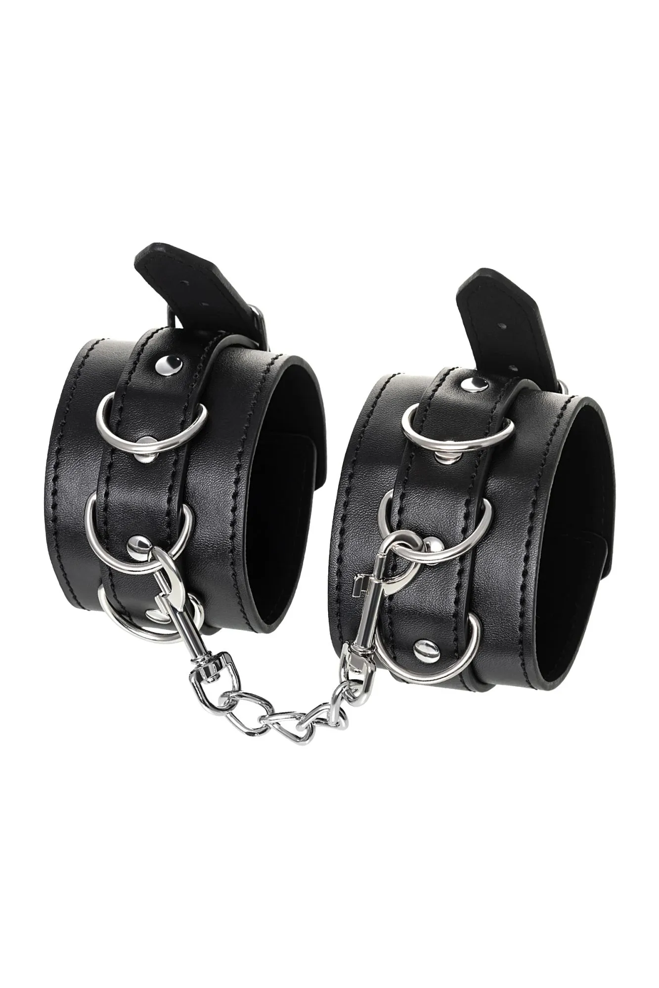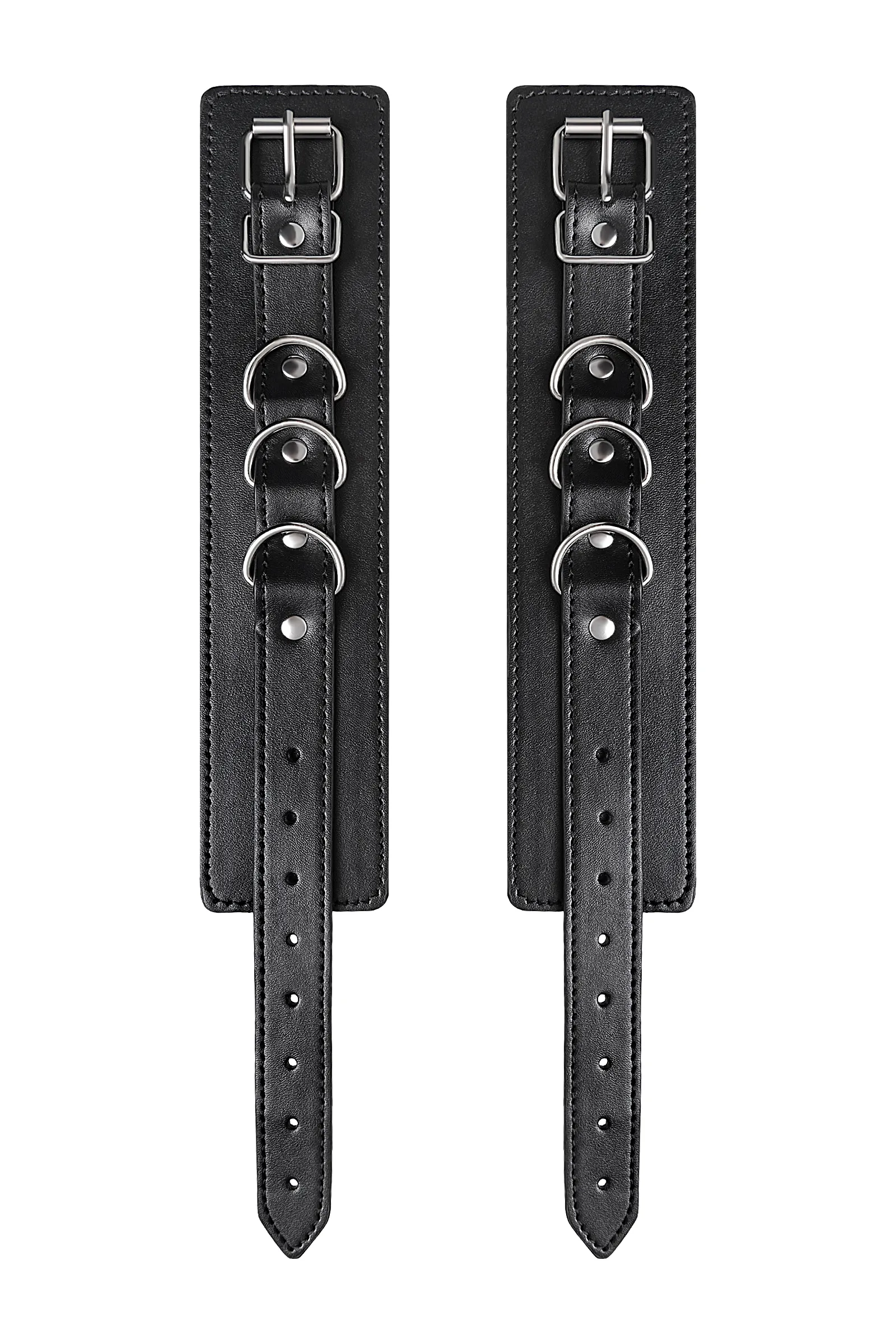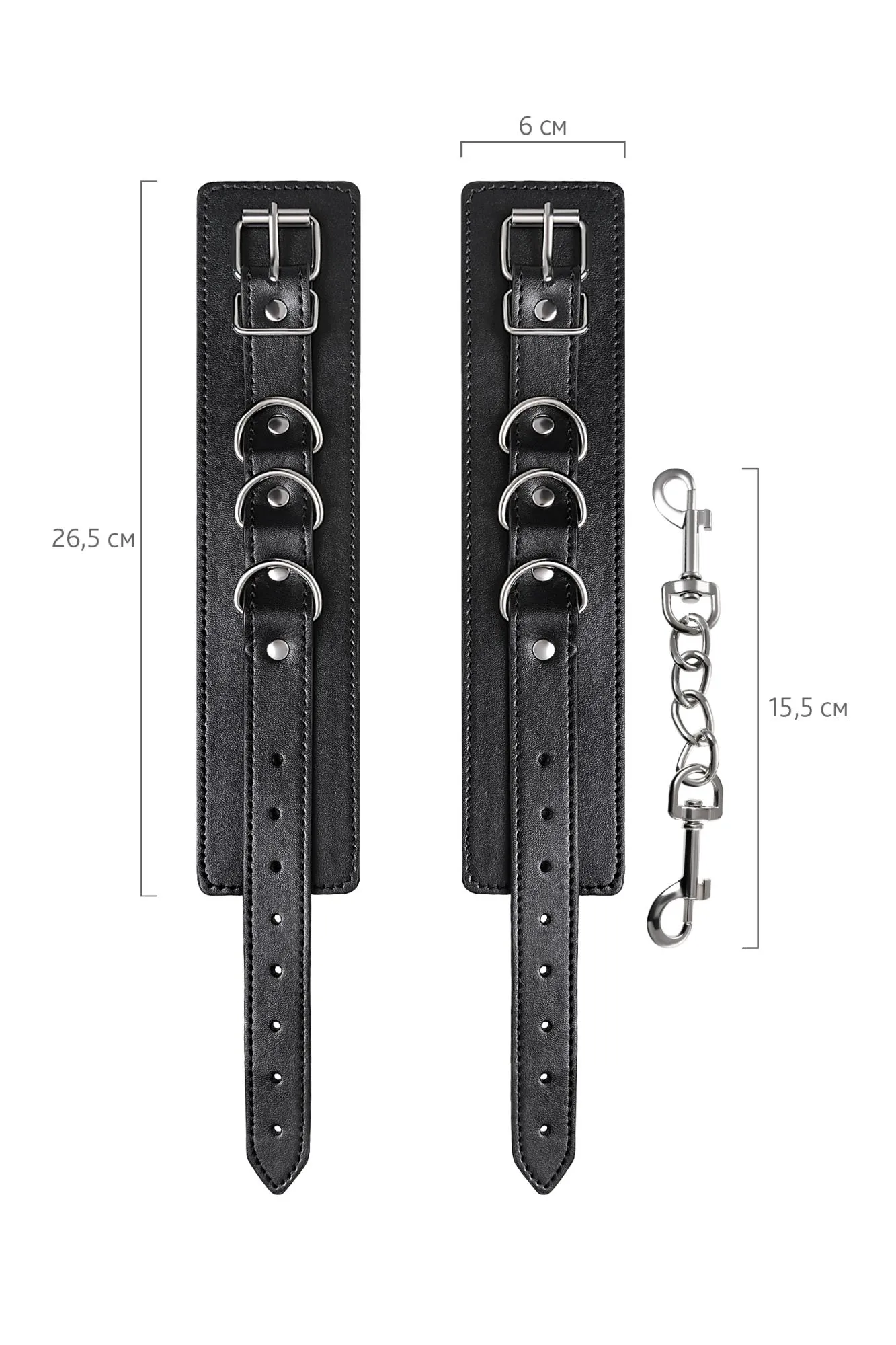 Черные оковы с металлической отделкой – брутальные ограничители свободы. К тому же, они на самом деле весьма жестко обхватывают ноги и надежно соединяют их между собой цепочкой на карабинах. Три кольца для крепления дают возможность дополнить поножи аксессуарами и использовать различные варианты фиксации. Длина оков позволяет использовать их практически на любой размер ног. Отрегулировать размер и силу обхвата легко с помощью ремешка и металлической пряжки. Черные оковы с металлической отделкой – это стиль и функционал. Теперь Доминант покажет, что значит грубое обращение и полный контроль над свободой. Материал: PU кожа, металл Цвет: черный Длина: 26,5 см Ширина: 6 см Длина сцепки: 15,5 см