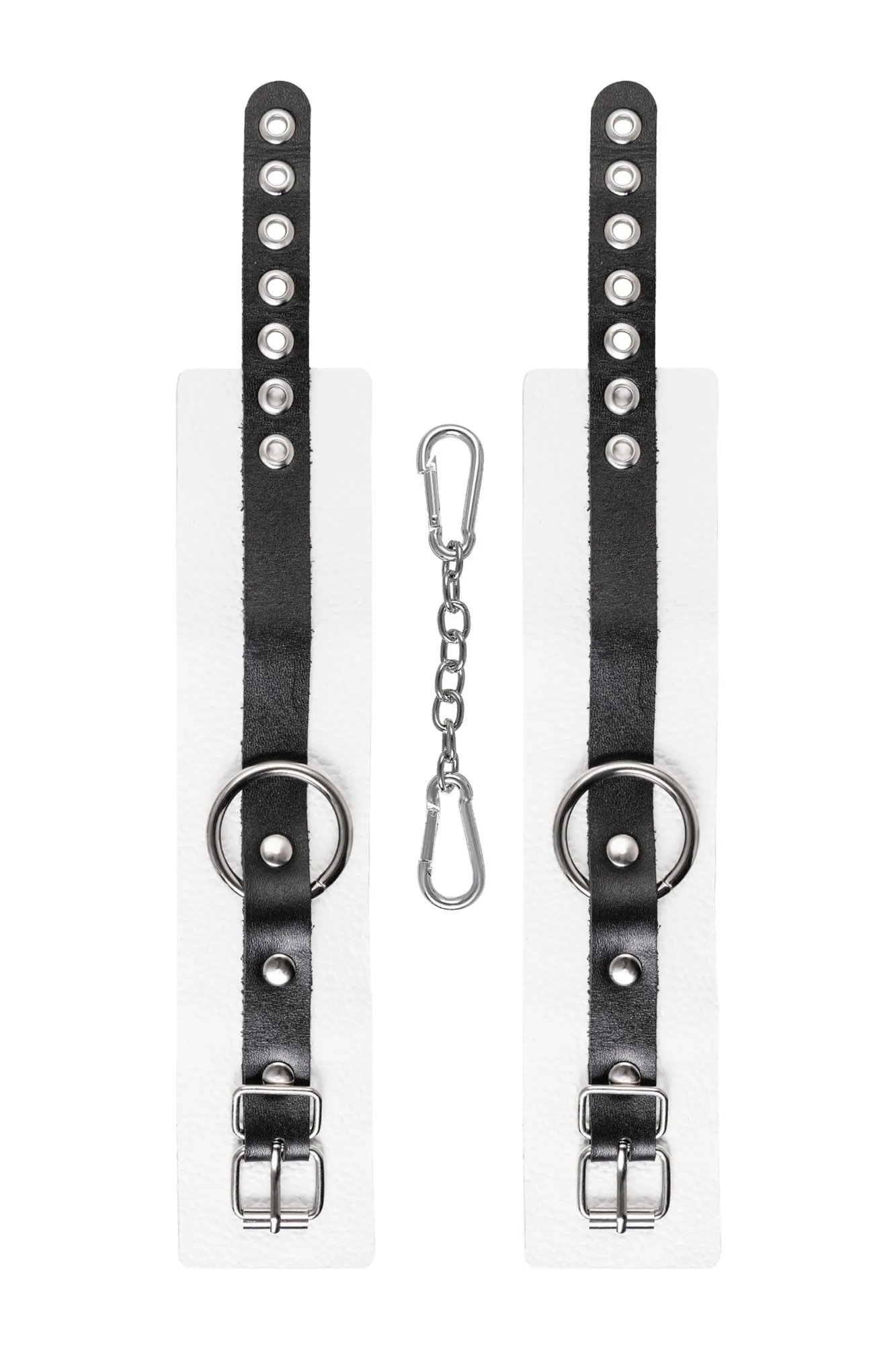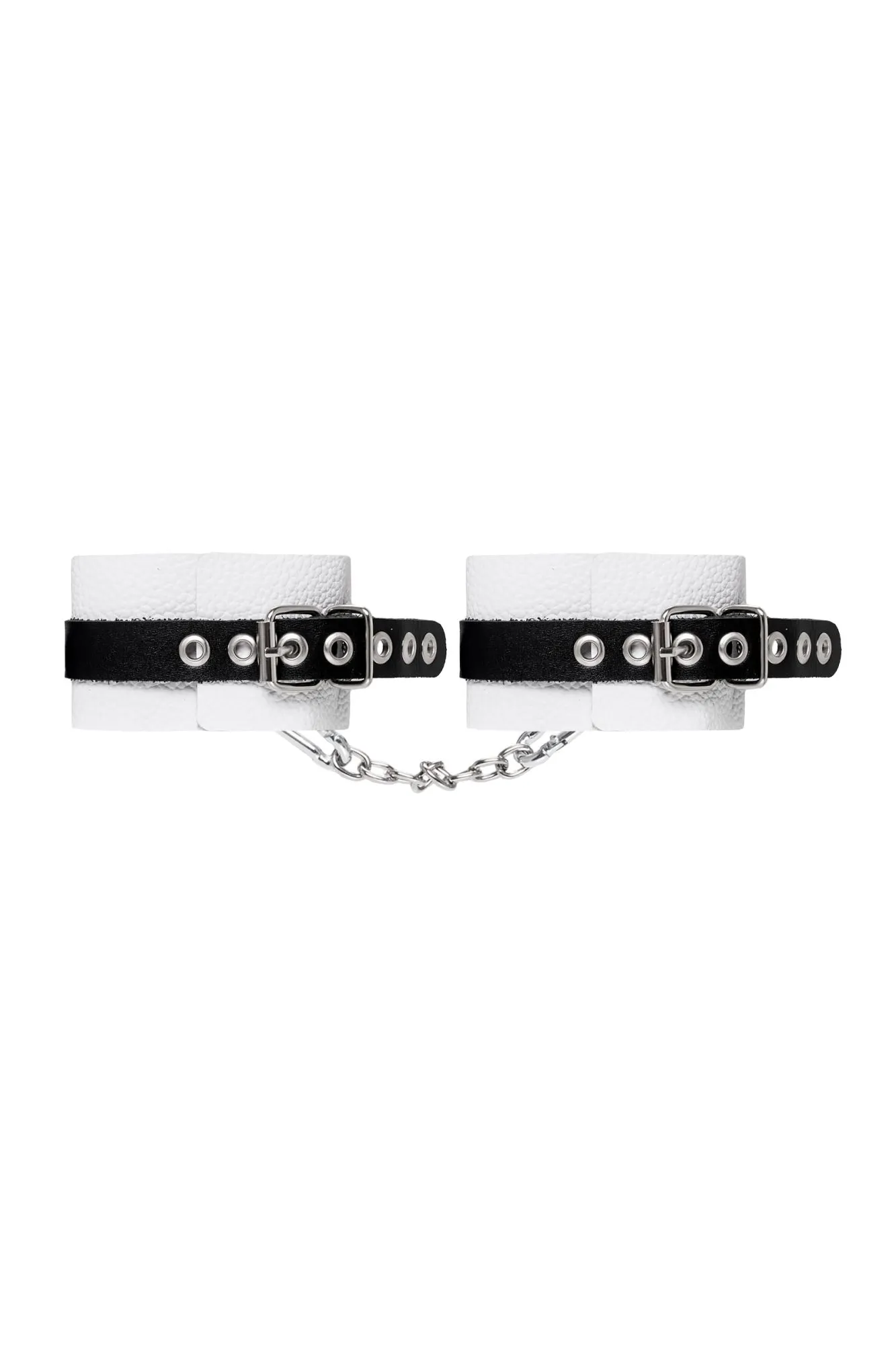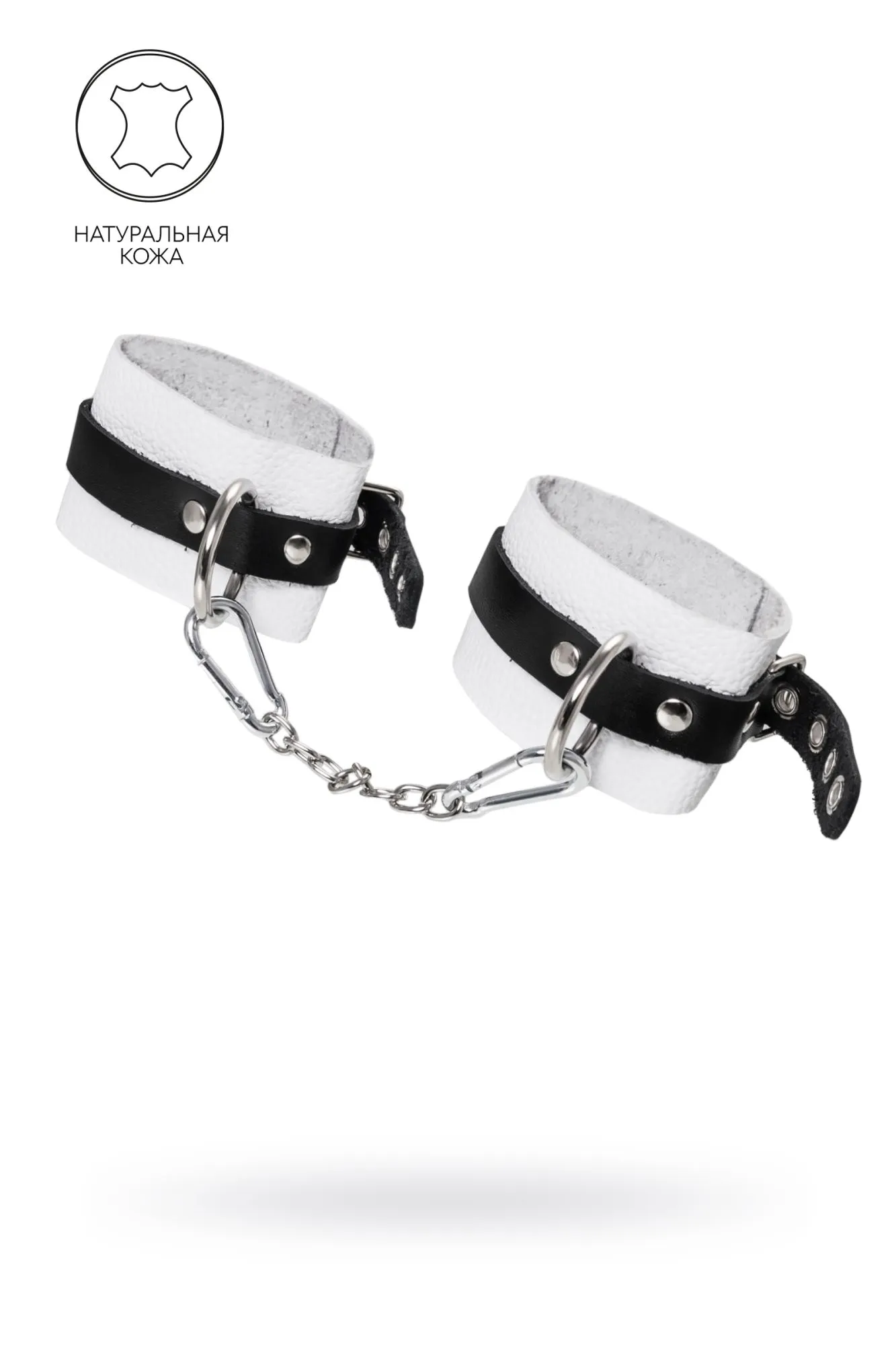 Оковы Pecado BDSM, мягкие, с одним ремешком, с люверсами, натуральная кожа, бело-чёрные