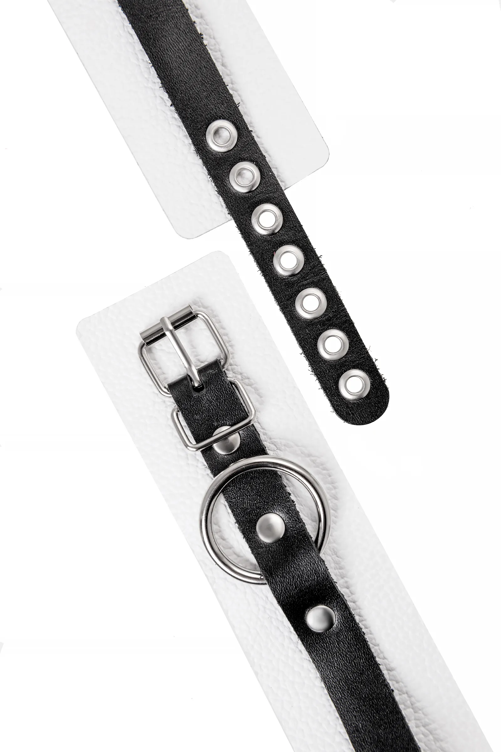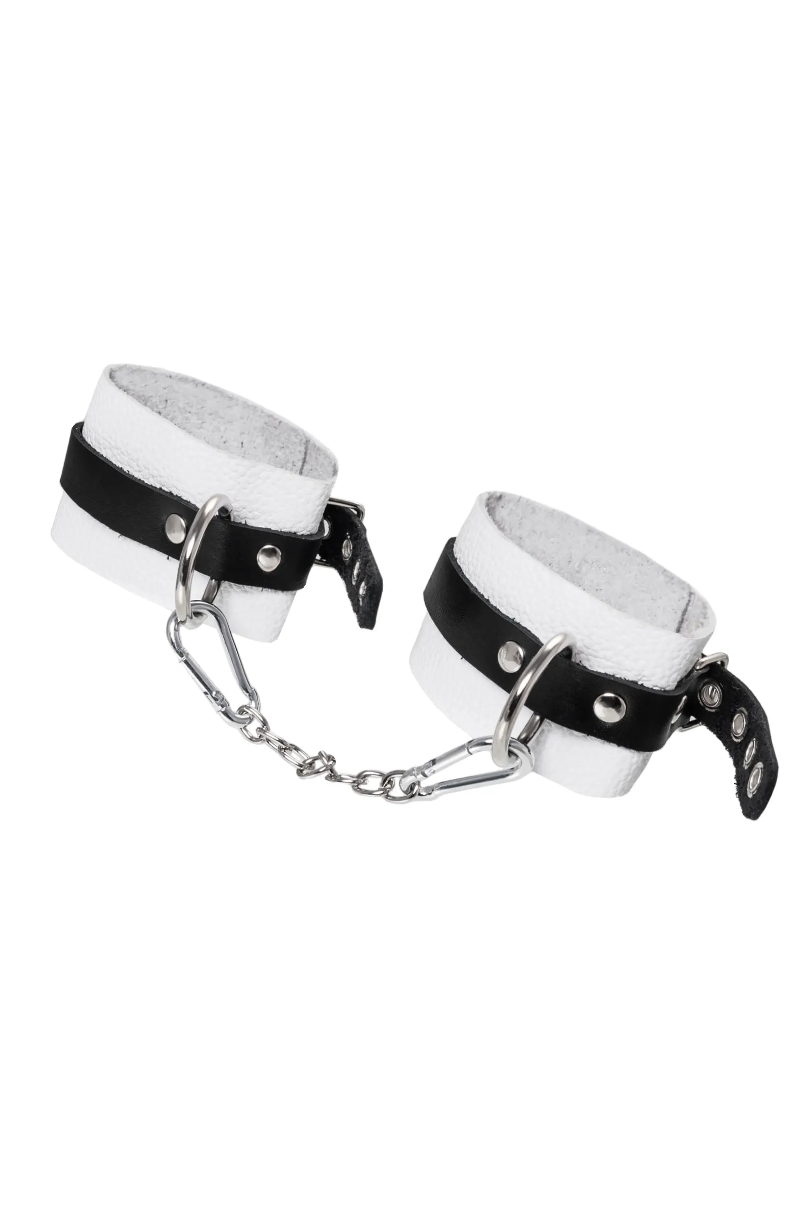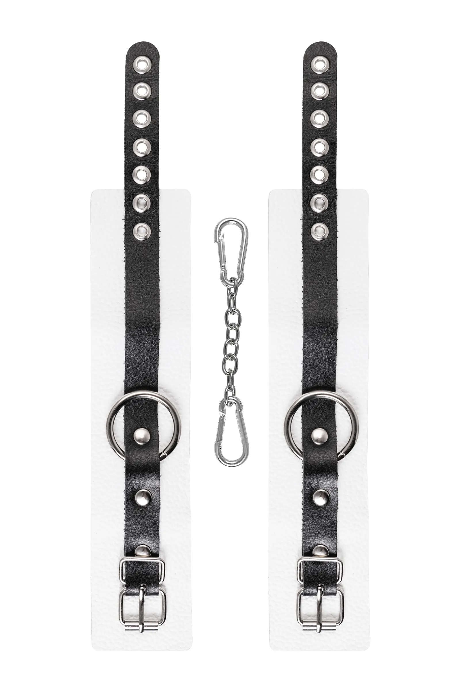 Оковы Pecado BDSM, мягкие, с одним ремешком, с люверсами, натуральная кожа, бело-чёрные
