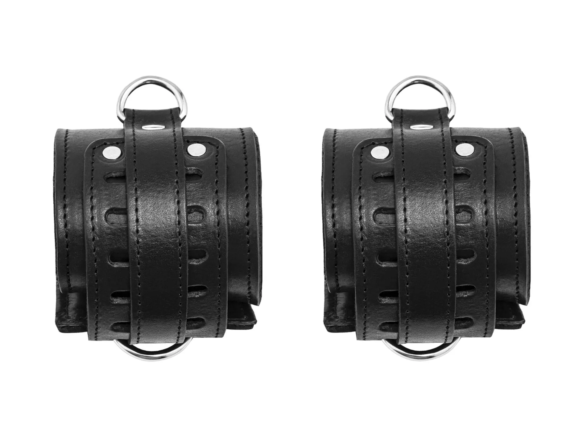Данная модель изготовлена из натуральной кожи черного цвета. Наручники оснащены удобными фиксирующими ремешками, каждый из которых фиксируется протягиванием через специальное кольцо. Мягкая подкладка (пена) обеспечит комфорт и безопасность.