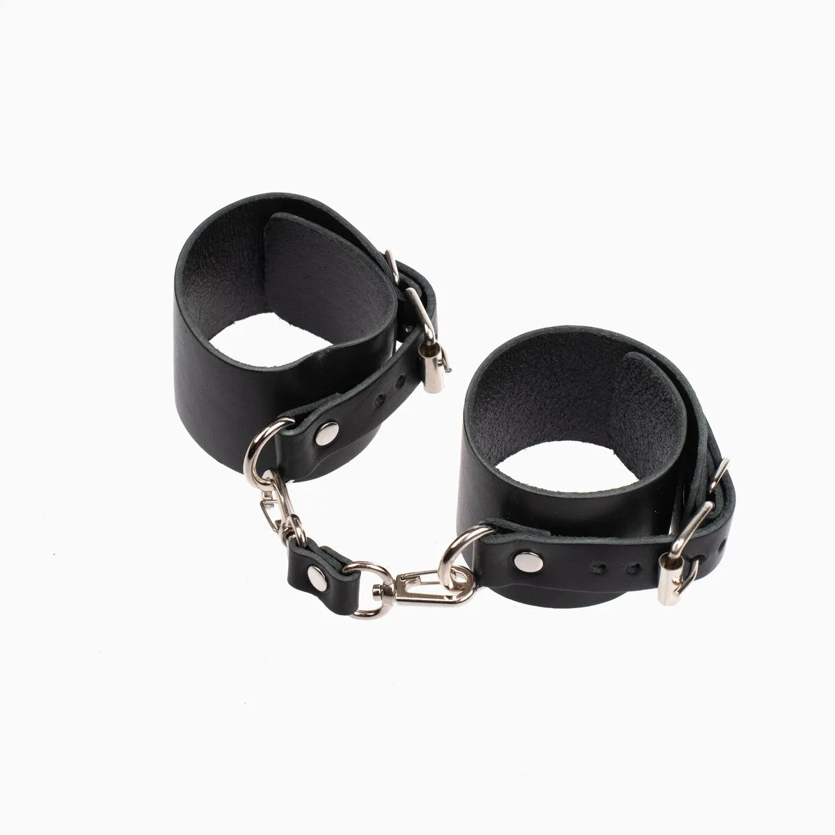 Теперь Вы можете быть уверены, что Ваш пленник не сбежит от Вас, если Вы обездвижите его с помощью этого БДСМ-аксессуара. Черные наножники декорированы металлическими клепками и соединены между собой при помощи цепочки. Ремешки с пряжками позволяют отрегулировать диаметр оков. Привнесите в Ваши интимные отношения немного разнообразия с помощью этого приспособления для сексуальных утех.