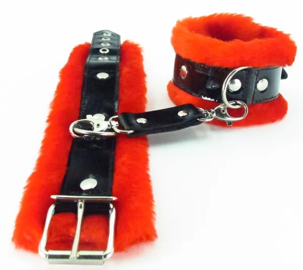 Милый и яркий аксессуар - наручники. Сочетание яркого меха и лаковых деталей не оставит Вас равнодушными! Ширина наручников - 5,5 см, размер регулируется при помощи застежки. Соединяются между собой при помощи ремешка на карабинах.